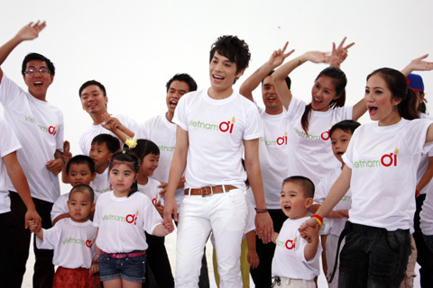 "Từ nơi đồng xa thơm hương lúa, về nơi nhà cao xe giăng phố. Từ nơi đảo xa mênh mông sóng, về nơi đồi cao bay mây trắng, một vòng tay nối tròn Việt Nam. Bao la đất trời quê hương xanh ngời, xòe tay đón nắng mai cười trong mắt. Bao nhiêu con người chung tay xây đời. Niềm tin nơi một Việt Nam sáng tươi", đó là những ca từ đẹp, thể hiện niềm lạc quan, yêu đời trong ca khúc "Việt Nam ơi".