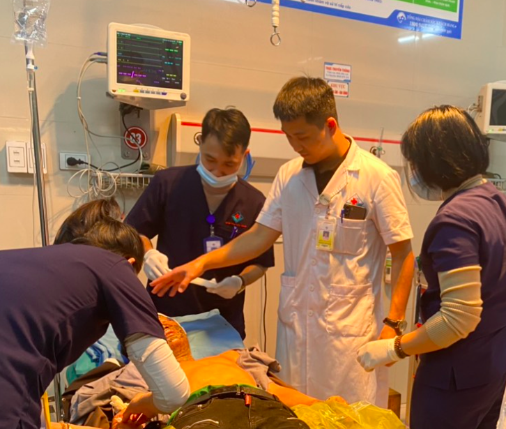 Bệnh nhân được đưa đến Trung tâm cấp cứu, Bệnh viện Đa khoa Hùng Vương (Phú Thọ) trong tình trạng đau đớn, khuôn mặt phù nề, chảy dịch nước, biến dạng. Vùng da mặt của bệnh nhân dính bẩn két của lá cây, hai bàn tay và cổ tay nhiều vết phồng rộp, chảy dịch. Các bác sĩ ngay lập tức giảm đau, chống sốc, vệ sinh băng bỏng vùng tổn thương.