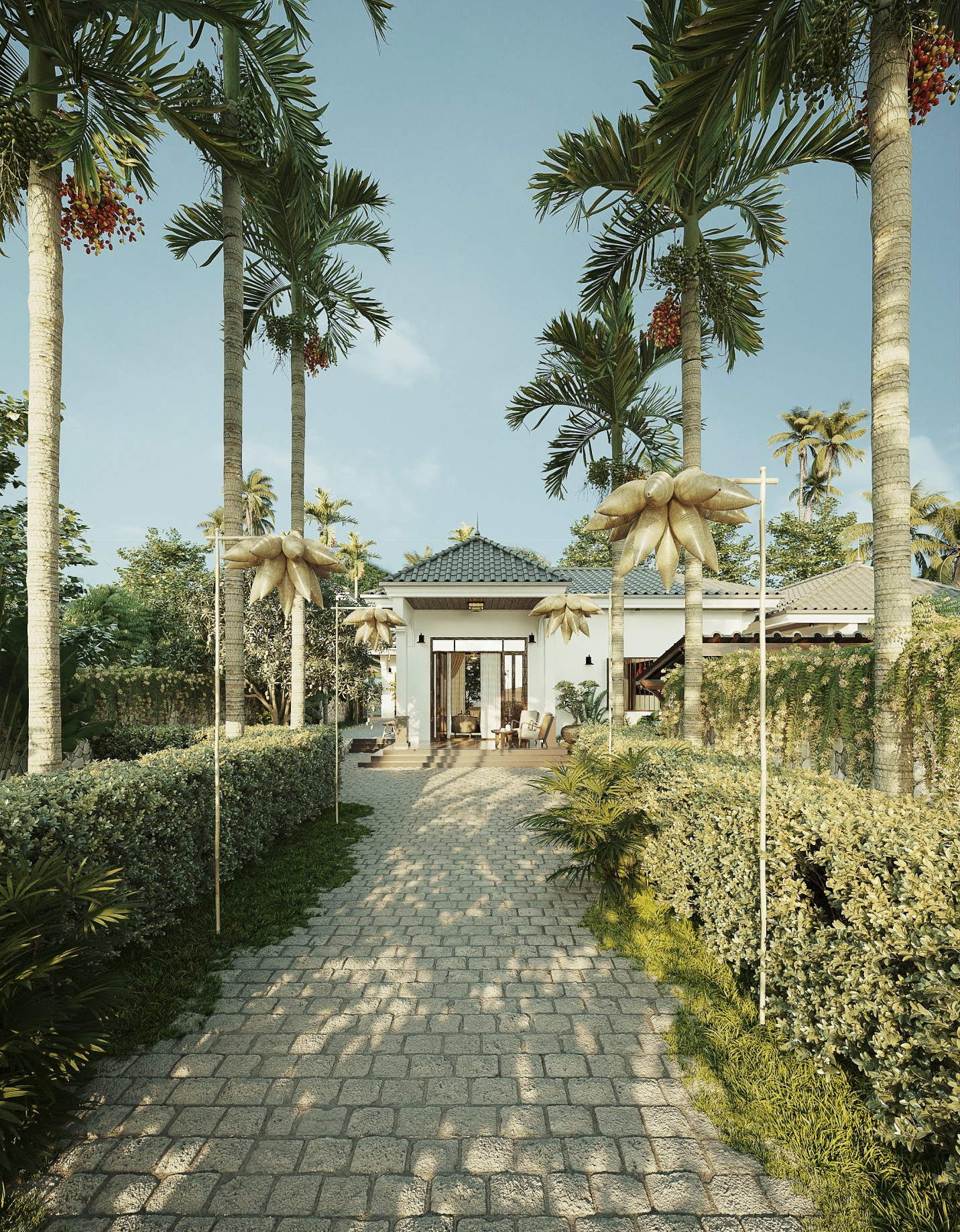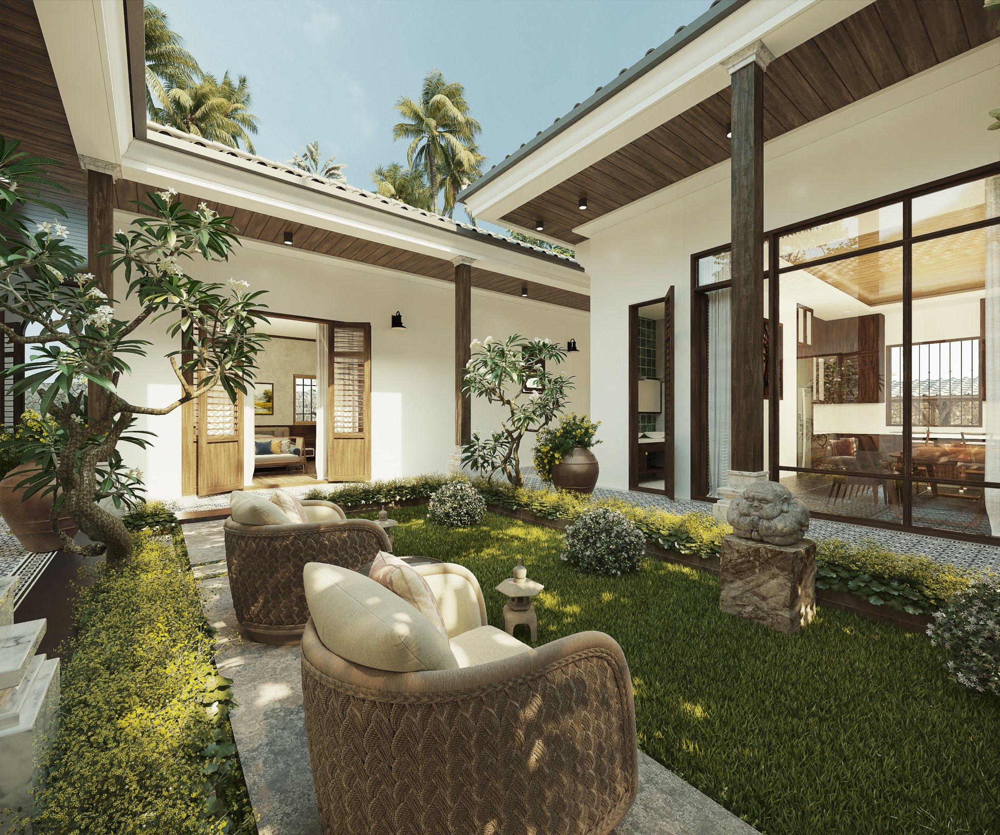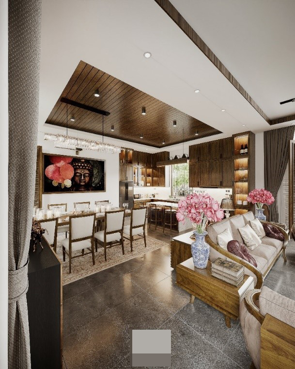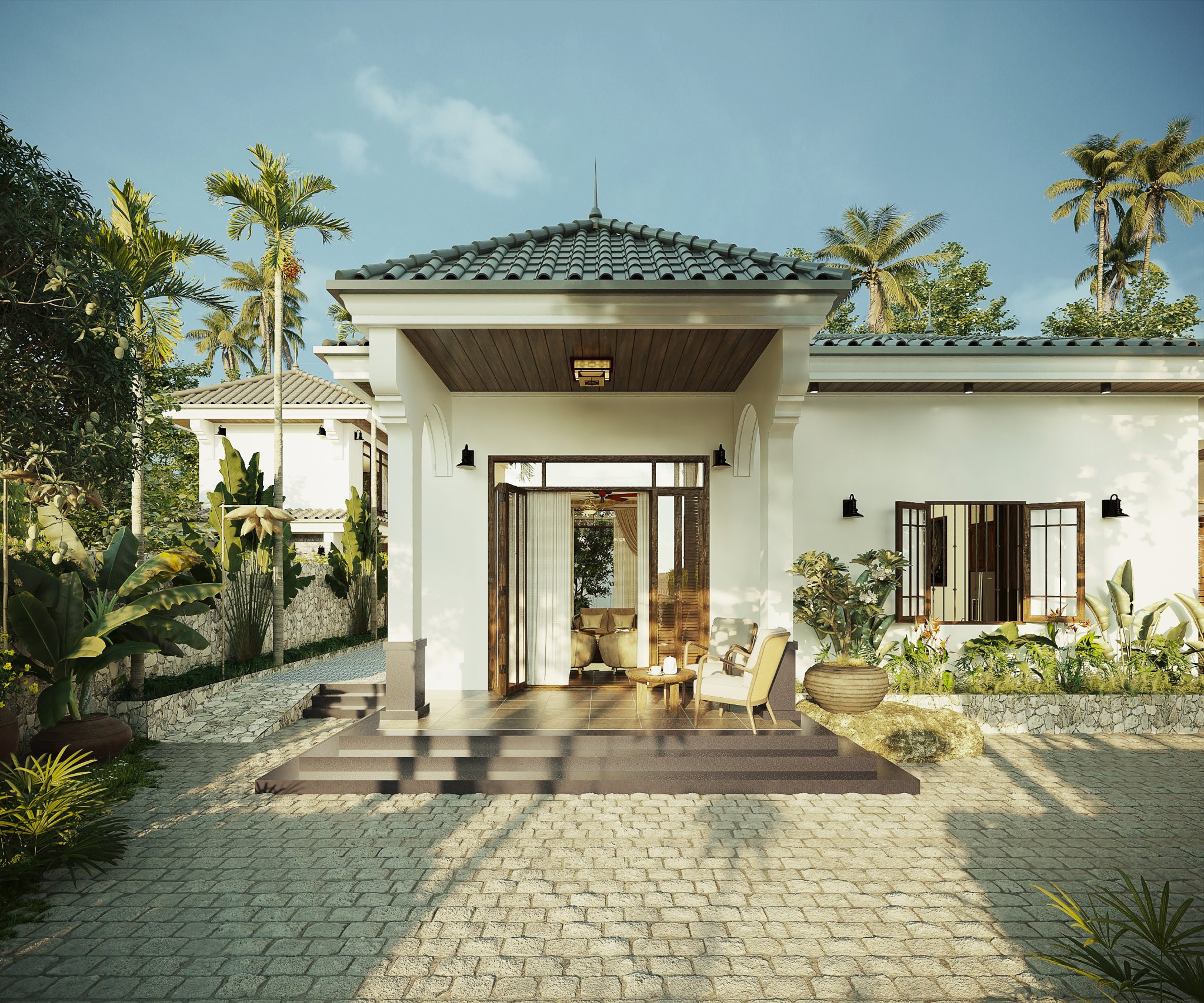 Lấy cảm hứng từ những hình ảnh quen thuộc của người Việt xưa, nơi sân vườn có những đứa trẻ nô đùa, ông bà ngồi nhâm nhi ly nước trà, ba mẹ trồng rau tưới cây,… cả nhà quây quần vui vẻ bên nhau. Người thiết kế mong muốn mang đến những giá trị tình cảm, hạnh phúc cho khách hàng với một không gian sống trọn vẹn, đủ đầy.
