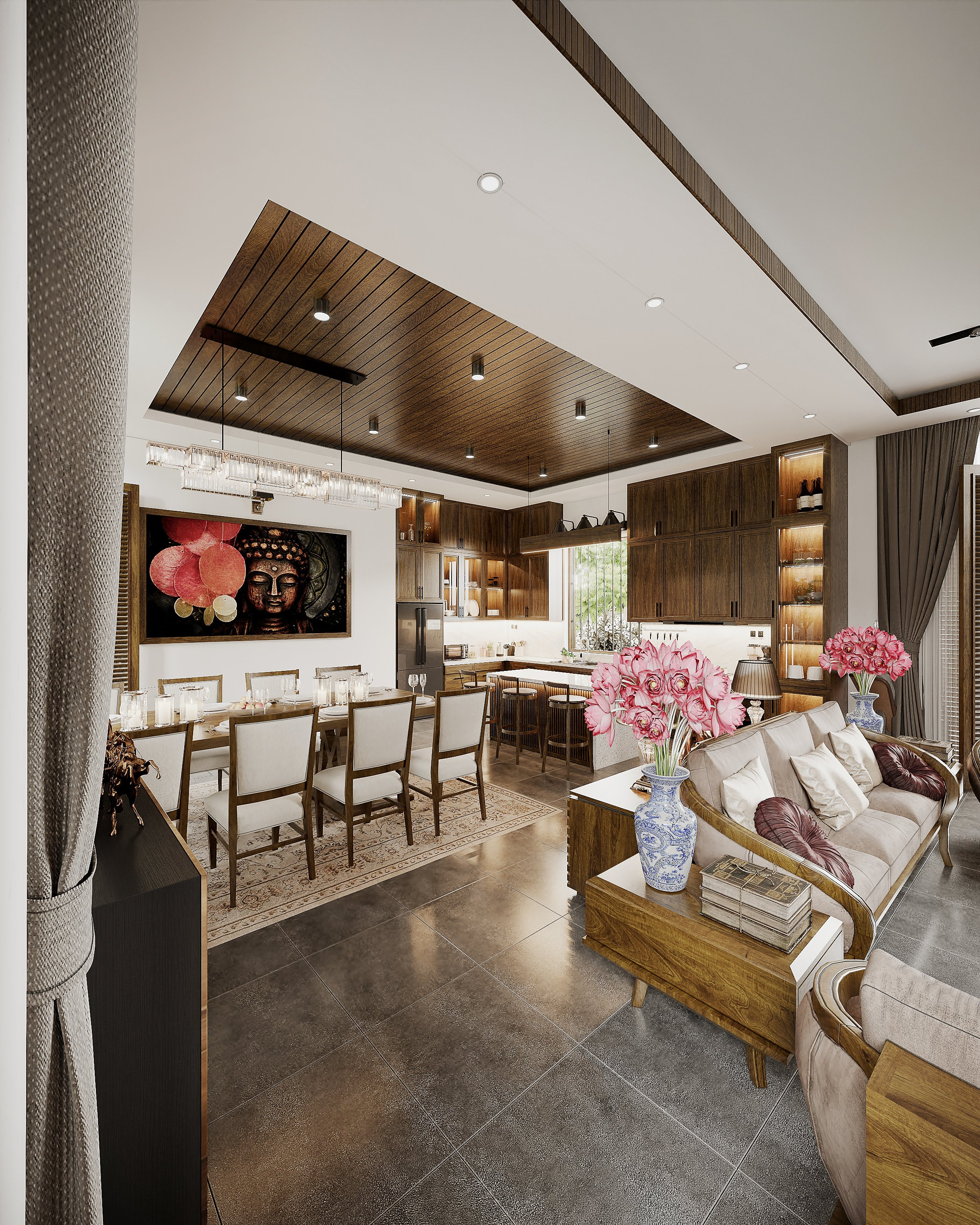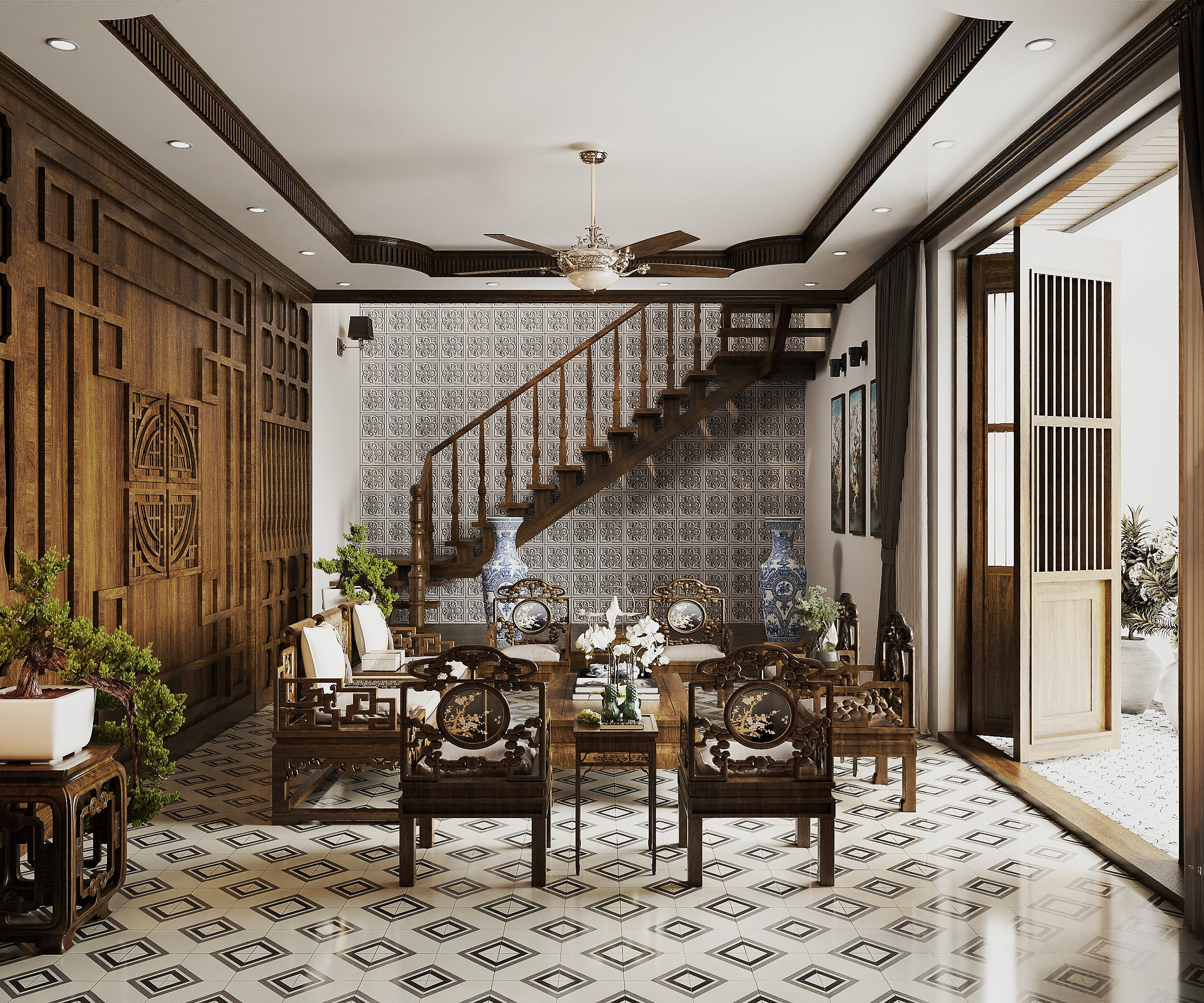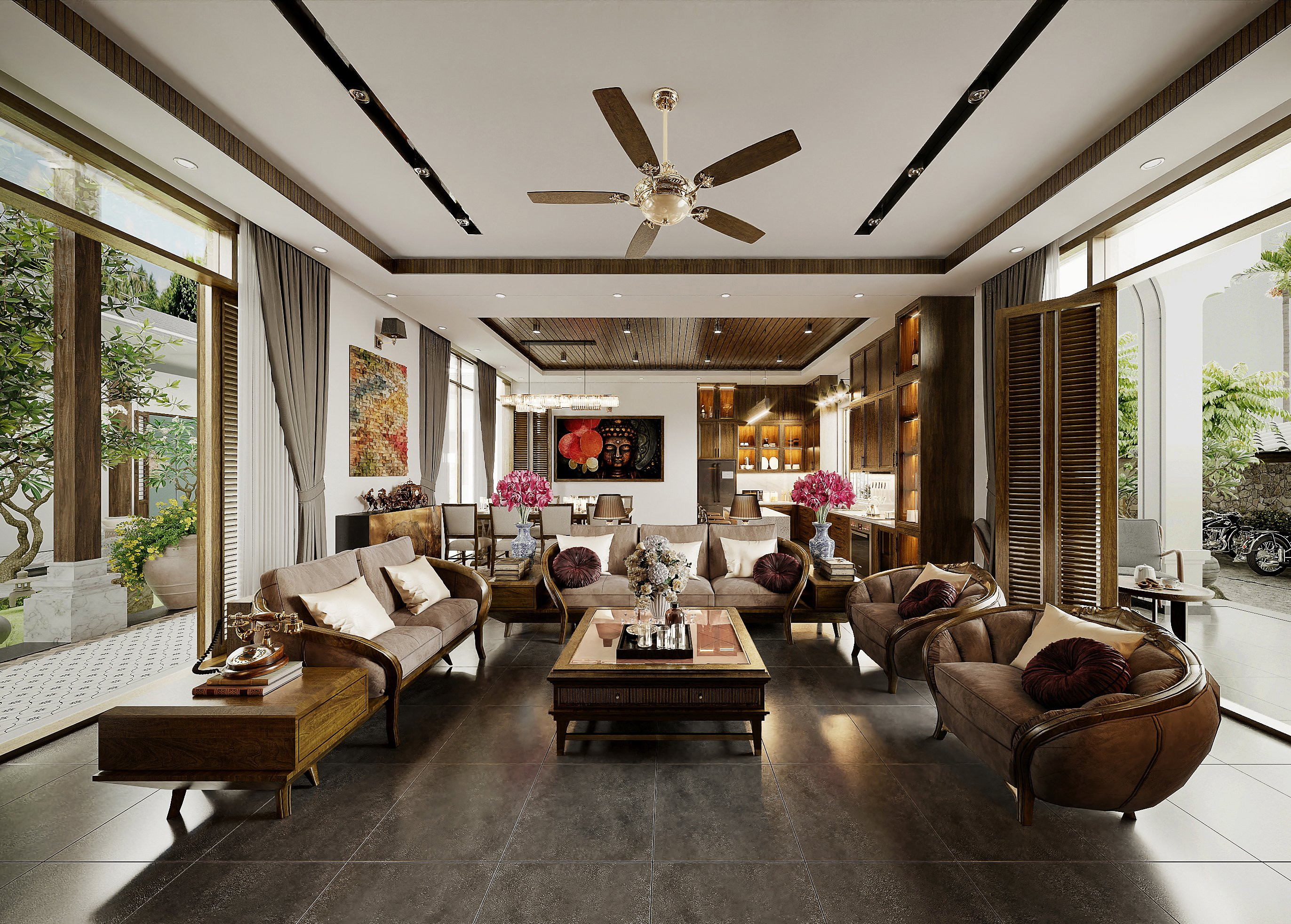 Lấy cảm hứng từ những hình ảnh quen thuộc của người Việt xưa, nơi sân vườn có những đứa trẻ nô đùa, ông bà ngồi nhâm nhi ly nước trà, ba mẹ trồng rau tưới cây,… cả nhà quây quần vui vẻ bên nhau. Người thiết kế mong muốn mang đến những giá trị tình cảm, hạnh phúc cho khách hàng với một không gian sống trọn vẹn, đủ đầy.