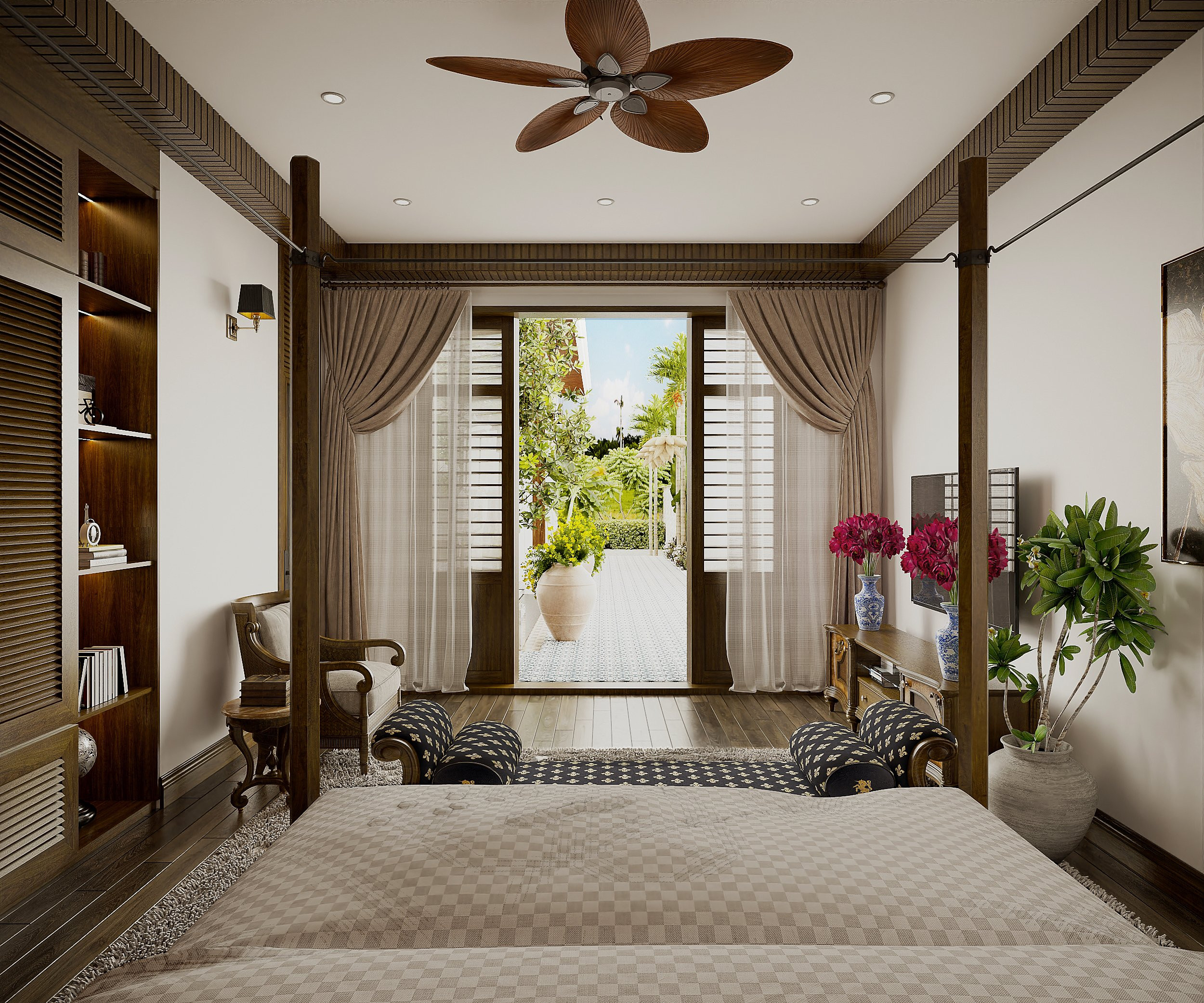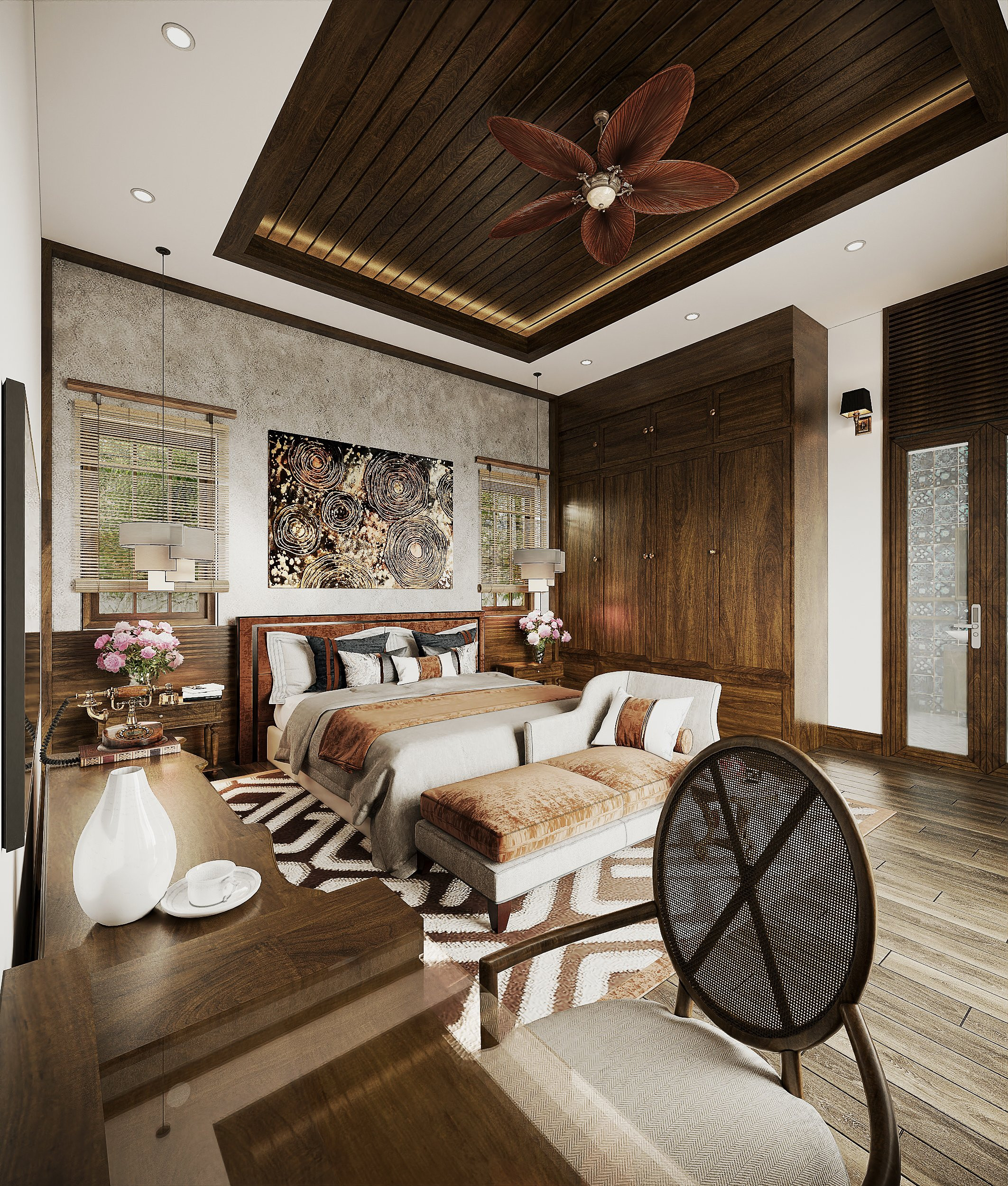Các phòng ngủ sẽ có phong cách riêng tùy theo sở thích mỗi thành viên được kiến trúc sư thiết kế rất hài hòa, đồng bộ tạo nên nếp sống văn hóa cho gia chủ với đầy đủ tiện nghi. Tất cả các phòng được hướng vào sân trong, đảm bảo mỗi giấc ngủ đều thư thái và trọn vẹn nhất sau một ngày dài.