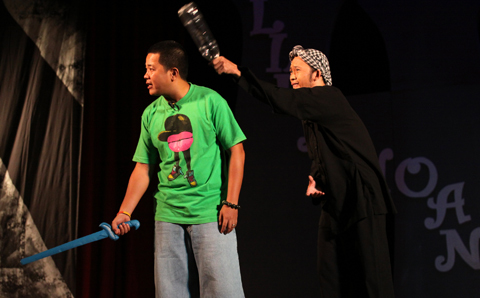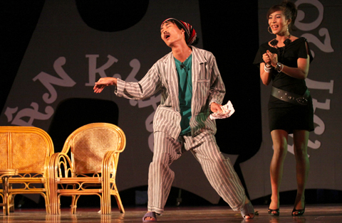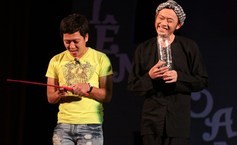 Đến từ tận TP. HCM, hai danh hài Hoài Linh và Hồng Vân vừa đáp máy bay và đi tới Hạ Long đã ngay lập tức lên sân khấu để mang đến cho khán giả những tiếng cười.