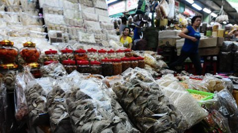 Chỉ cần dạo quanh một số chợ trên địa bàn TP.HCM như An Đông (Q.5), Bình Tây (Q.6)... khách hàng sẽ “hoa mắt” với các loại sản phẩm bồi bổ sức khỏe như tổ yến, nấm linh chi, nhân sâm, vi cá mập... được bày bán chung với tôm, cá khô.