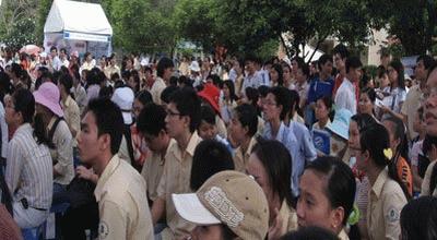 | SV ngành ngân hàng trong hội chợ việc làm. Với các nhà tuyển dụng, yêu cầu ứng viên chuyên nghiệp từ việc đúng giờ rất quan trọng. Ảnh: Thái Phương |