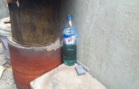 | Chai xăng thu được tại hiện trường (Ảnh: Soha) |