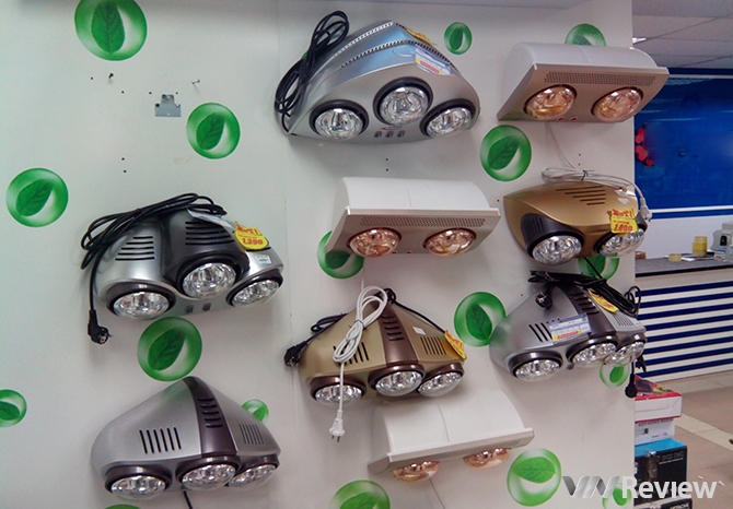 Một số mẫu đèn sưởi nhà tắm đang được bày bán tại siêu thị điện máy