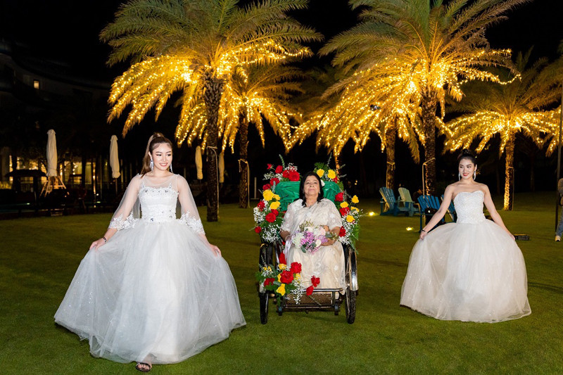 Ngoài bối cảnh tiệc cưới chính trên bãi biển đẹp như tranh hướng ra vịnh kỳ quan Hạ Long, suốt 1 tuần lễ, toà khách sạn được trang hoàng theo phong cách văn hoá đậm nét Ấn, qua những đại cảnh sắc màu rực rỡ, những hoạ tiết đặc trưng… cho đến thực đơn riêng, âm nhạc rộn ràng… ở mọi khu vực, đáp ứng không gian tổ chức của các nghi lễ quen thuộc.