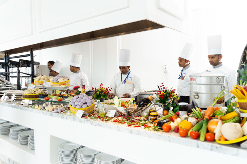 Để đảm bảo sự hài lòng tối đa cho mọi khách mời tham dự hôn lễ, Vinpearl Resort & Spa Hạ Long đã tập trung toàn lực, bên cạnh hơn 400 nhân viên tận tâm, khách sạn còn mời đến đội ngũ đầu bếp người Ấn dày dặn kinh nghiệm để phục vụ thực đơn cầu kỳ, đặc thù trong các nghi lễ của đám cưới. Đặc biệt, cô dâu là doanh nhân thành đạt trong lĩnh vực kinh doanh nhà hàng - bar nên yêu cầu rất cao về tiêu chuẩn hương vị, trình bày món ăn, thức uống.
