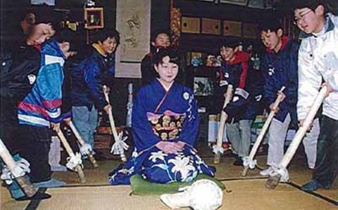 Nhật Bản đang bước vào kỷ nguyên của “dân số già” và “tỷ lệ sinh thấp”. Vì vậy mà nhiều phong tục truyền thống vẫn còn ảnh hưởng tới bây giờ. Một số địa phương ở Nhật do không có đám cưới nào được tổ chức trong một thời gian dài nên tục lệ “đánh mông cô dâu” cũng ít xuất hiện. Tuy nhiên, ngày 15 tháng 1 vừa qua, tại Akita (Nhật), tục lệ này đã được khôi phục lại.