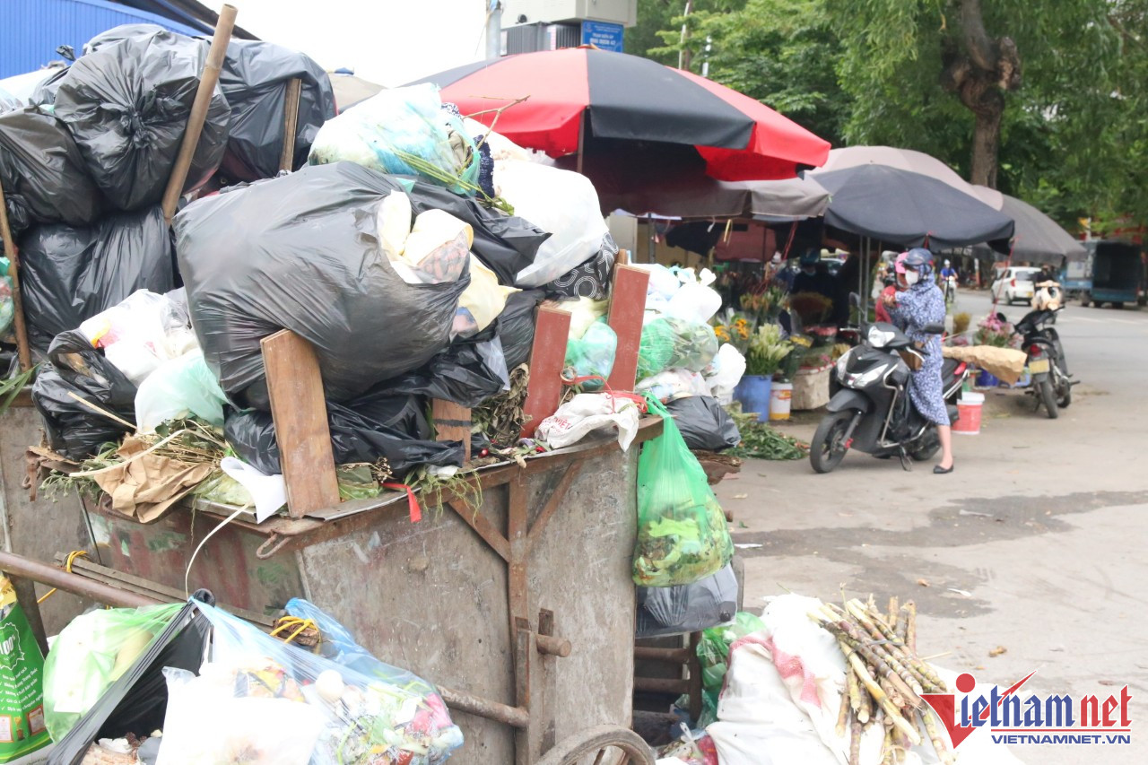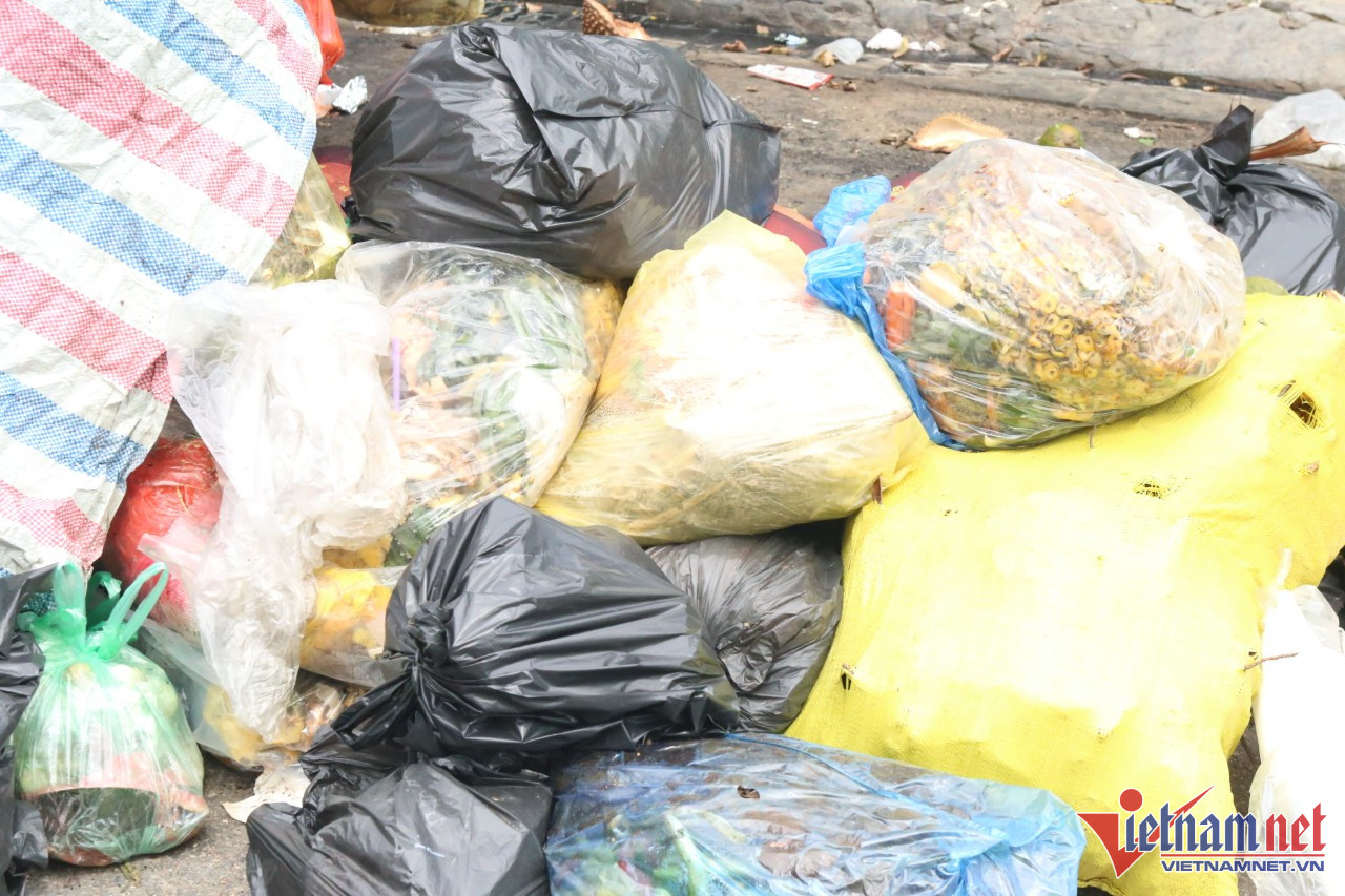 Mấy ngày nay rác thải sinh hoạt ở Hà Nội bị ùn ứ, chất đống. Từng hàng xe chở rác bốc mùi hôi thối để dưới lòng đường chờ lực lượng chức năng xử lý.