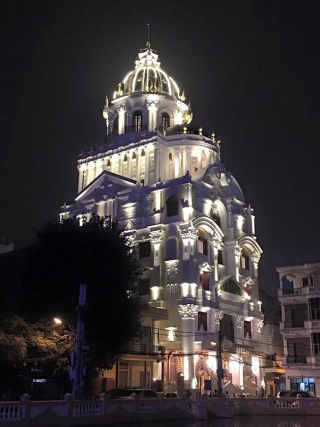 Ngôi nhà nhìn như lâu đài, nổi bật hơn hẳn so với các nhà dân bình thường xung quanh. Được biết, ông T. từng bắt đầu kiếm tiền với nghề buôn phế liệu, sắt vụn.