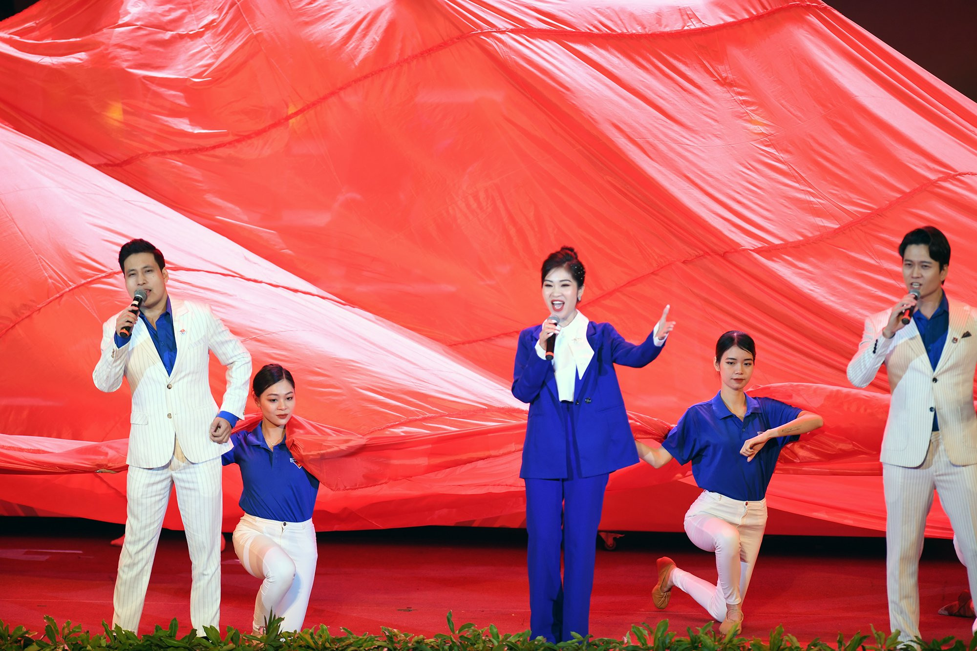 Ca sĩ Tùng Dương cùng nhiều nghệ sĩ khác biểu diễn chào mừng các đại biểu tham dự Đại hội Đoàn toàn quốc lần thứ XII.
