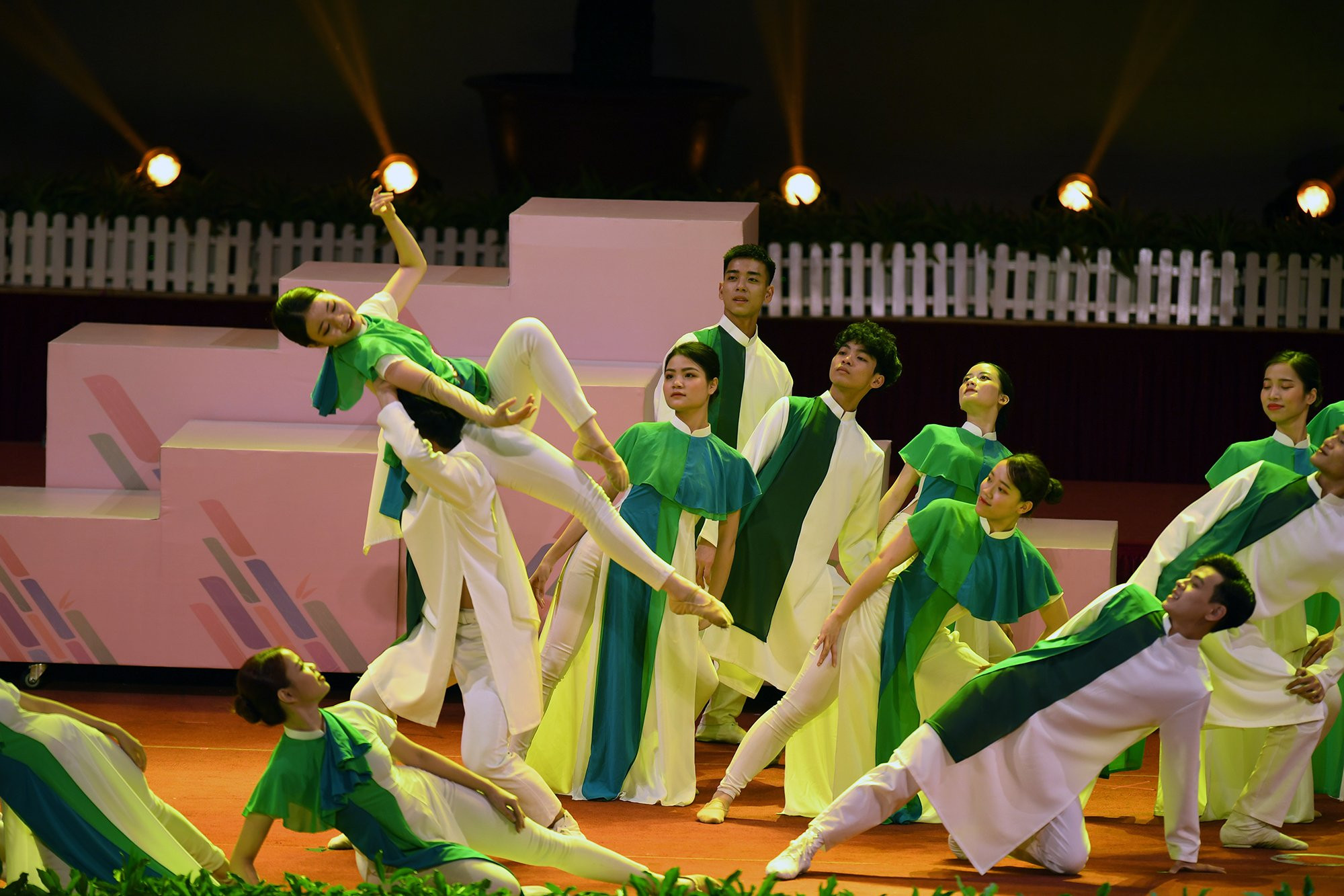 Chương trình văn nghệ chào mừng đại hội Đoàn lần thứ XII với nhiều tiết mục mang chủ đề lớn như: Khát vọng cống hiến, Lẽ sống thanh niên và Tự hào tiến bước. Ca sĩ Tùng Dương trong một tiết mục được dàn dựng công phu.Điểm nhấn của chương trình chính là sự kết hợp đầy xúc cảm giữa các phần biểu diễn nghệ thuật được dàn dựng công phu, với việc giả lập công nghệ thực tế ảo tăng cường AR (Augmented Reality) ngay trên sân khấu. Công nghệ AR là công nghệ thực tế ảo tăng cường, tích hợp đồ họa máy tính vào hình ảnh quay trực tiếp trong thế giới thực để khán giả có thể nhìn bằng mắt thường.Xuyên suốt chương trình nghệ thuật là hình ảnh quen thuộc nhưng chưa bao giờ mất đi tính biểu trưng của thời đại: Hình tượng tre với sự liên tưởng tới tuổi trẻ nước nhà. Hình ảnh tre luôn vươn lên mạnh mẽ hàng hàng lớp lớp mang khát vọng và hoài bão phụng sự bảo vệ tổ quốc, kiến thiết nước nhà, phát triển quốc gia vững mạnh, hùng cường.Thủ pháp nghệ thuật đặc biệt của chương trình là việc trích dẫn các tác phẩm âm nhạc đúng trọng điểm, chỉ lấy giai điệu và ca từ phù hợp trong một ca khúc, sau đó phối trộn thành bản hòa ca đa thanh điệu, vừa gần gũi, lại mang tiết tấu thu hút ấn tượng. Khán giả như thấy được sự thân quen ở nội dung tác phẩm nhưng hoàn toàn mang sắc màu của tuổi trẻ hôm nay. Chương trình thể hiện được ý nghĩa khắc họa những phẩm chất vốn có và mới được kiến tạo do yêu cầu thời đại của lực lượng Đoàn viên thanh niên Việt Nam. Tổng đạo diễn Đặng Lê Minh Trí cho biết, khó khăn lớn nhất của ekip khi thực hiện chương trình là làm sao tạo nên được tính phổ quát trong khoảng hơn 30 phút nghệ thuật. “Ai trong chúng ta cũng đều có cơ hội trải nghiệm tuổi trẻ, khoảng thời gian được ví như mùa xuân của cuộc đời mỗi người. Là người làm nghệ thuật trẻ, tôi mong muốn gửi gắm khát vọng của mình trong chương trình này, đó là: điều đẹp nhất của tuổi trẻ là sự cống hiến cho lý tưởng”, đạo diễn Đặng Lê Minh Trí chia sẻ.
