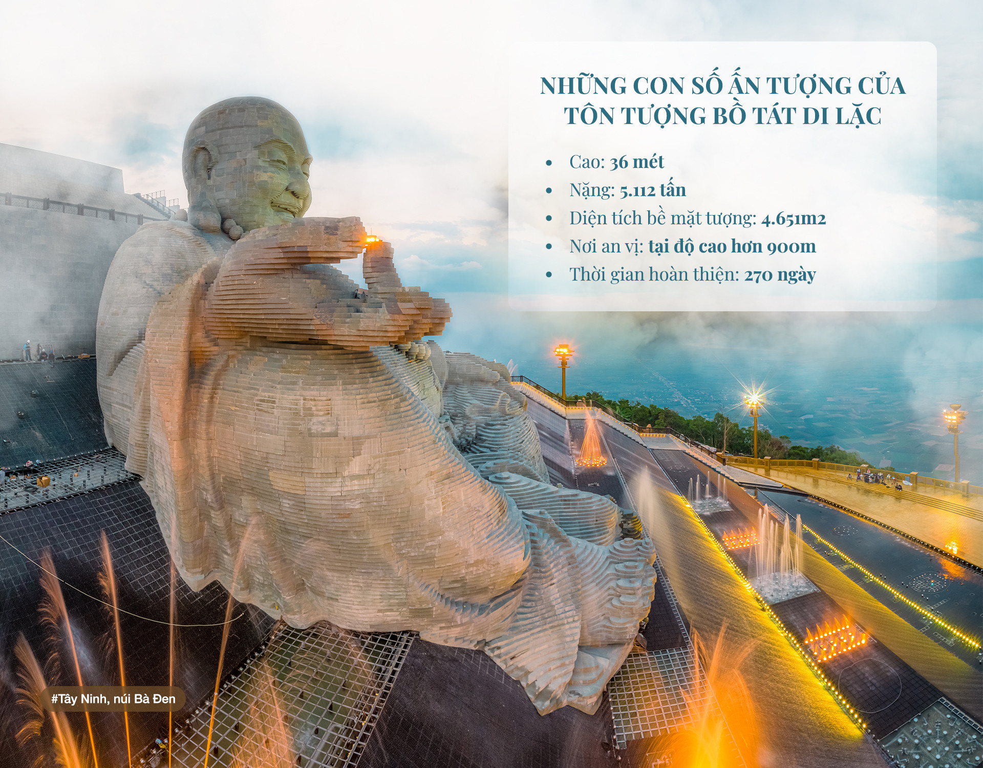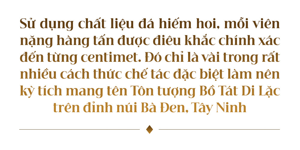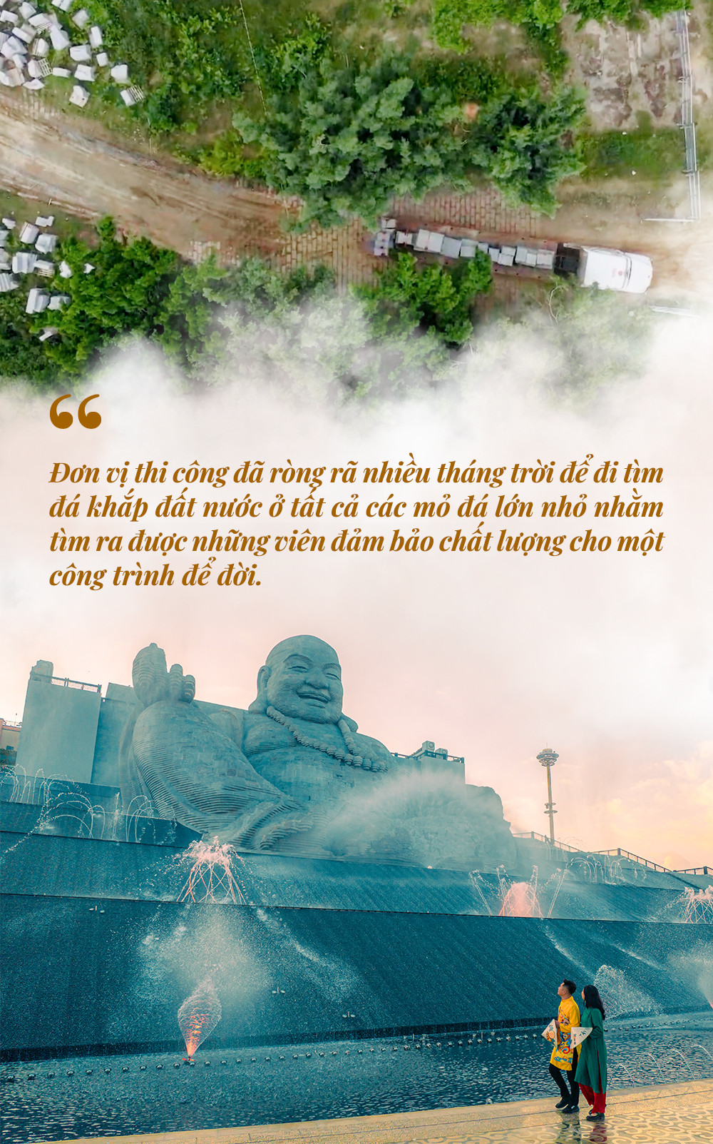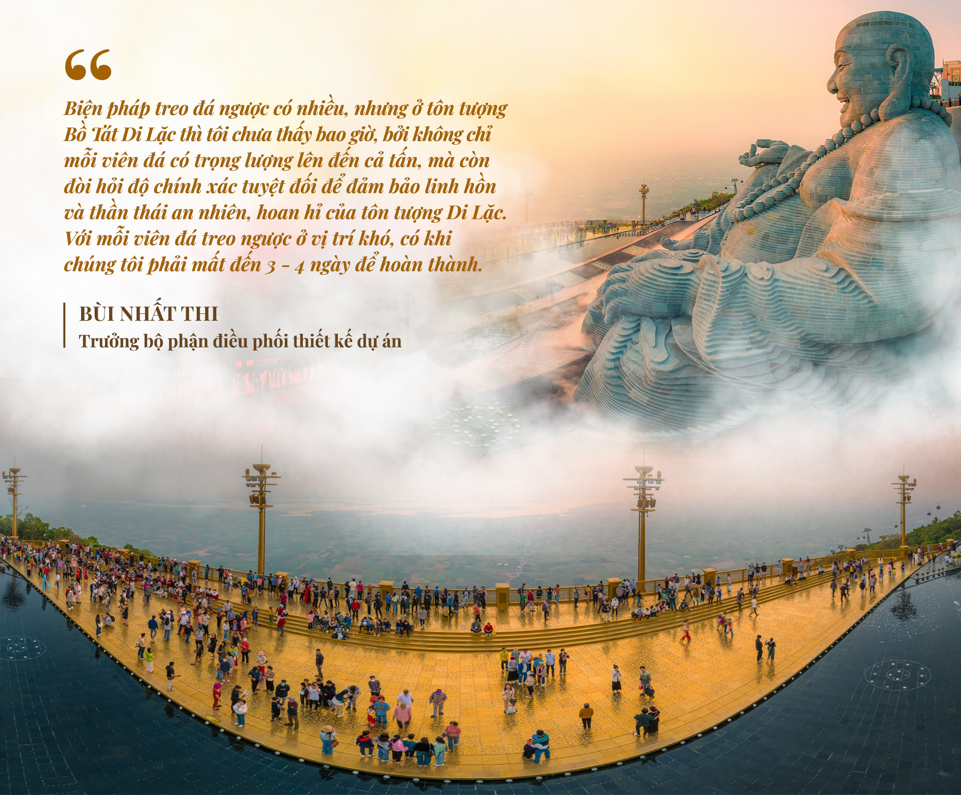 Giữa năm 2022, khi nhận nhiệm vụ giám sát và thi công tôn tượng Bồ Tát Di Lặc được ghép từ 6.688 viên đá sa thạch, mà mỗi viên mang một kích cỡ, một tạo hình duy nhất, mọi thứ dường như nằm ngoài sức tưởng tượng của các cán bộ ban quản lý dự án Tây Ninh thuộc tập đoàn Sun Group. Công trình nằm trên đỉnh phân thuỷ có địa hình dốc lớn của núi Bà Đen, khe tụ thuỷ chảy xuyên phạm vi địa hình, tạo ra chia cắt và thay đổi trạng thái địa chất.