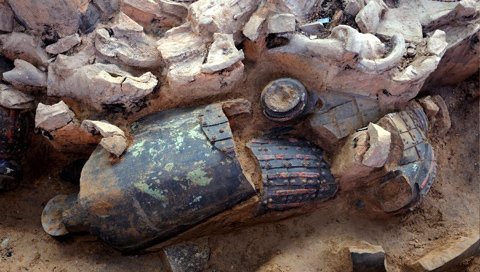 Sau 3 năm tiến hành khai quật, bắt đầu từ 13/6/199 tới tháng 5/2012, các nhà khảo cổ Trung Quốc đã đưa ra khỏi lòng đất hàng trăm cổ vật bao gồm xe ngựa, binh khí, công cụ sản xuất cho tới tượng binh mã.
