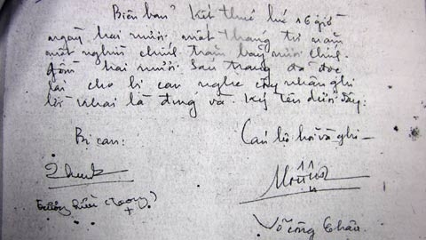 Chữ ký của Toọng (bên trái) và cán bộ xét hỏi trong một lần hỏi cung.