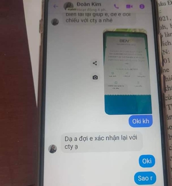 Thấy mức lương cao việc lại nhẹ, anh liền H. trả lời đồng ý, nhưng tài khoản “Đoàn Kim Đan” yêu cầu anh H. phải đóng tiền phí hồ sơ là 1 triệu đồng cùng nhiều chi phí khác để được “công ty duyệt”.