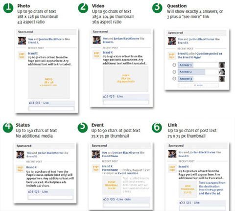 Nếu bạn chưa chú ý thì, gần đây, Facebook đã cải thiện các ứng dụng để hỗ trợ cho loại hình quảng cáo mới, như quảng cáo đặc biệt ở góc phải của profile, ở News Feed, khi bạn log out Facebook và trên News Feed điện thoại của bạn. Và Facebook đã cập nhật nền tảng quảng cáo để thêm vào 6 loại quảng cáo khác trực tiếp vào nội dung. Hệ thống mới này sẽ cho phép các nhà quảng cáo tạo một page post hoặc story (theo cách gọi của Facebook) mà có thể cập nhật status, ảnh, video, link, các câu hỏi hoặc sự kiện và, xem chúng như một mẩu quảng cáo.