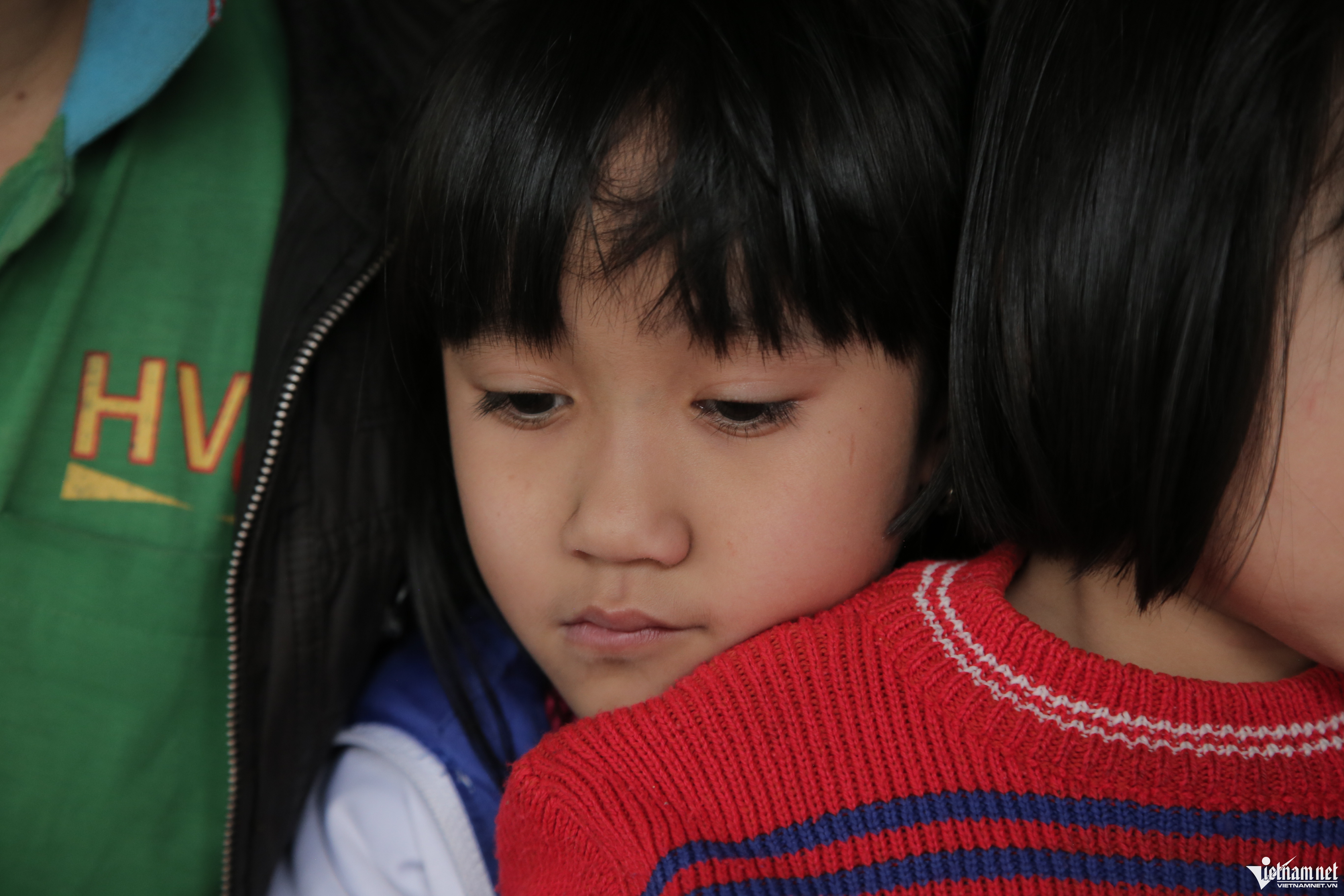 "Em rất thương bố, rất nhớ mẹ", cô bé thủ thỉ. Nghe cháu nói, bà Cận nghèn nghẹn, mắt chực rơi lệ.