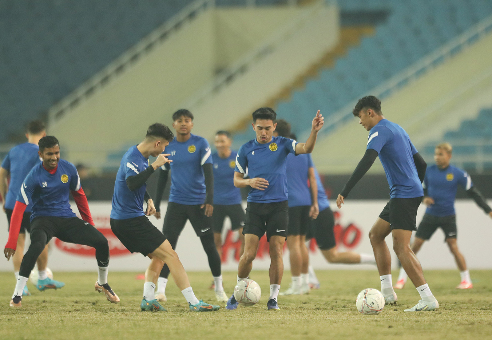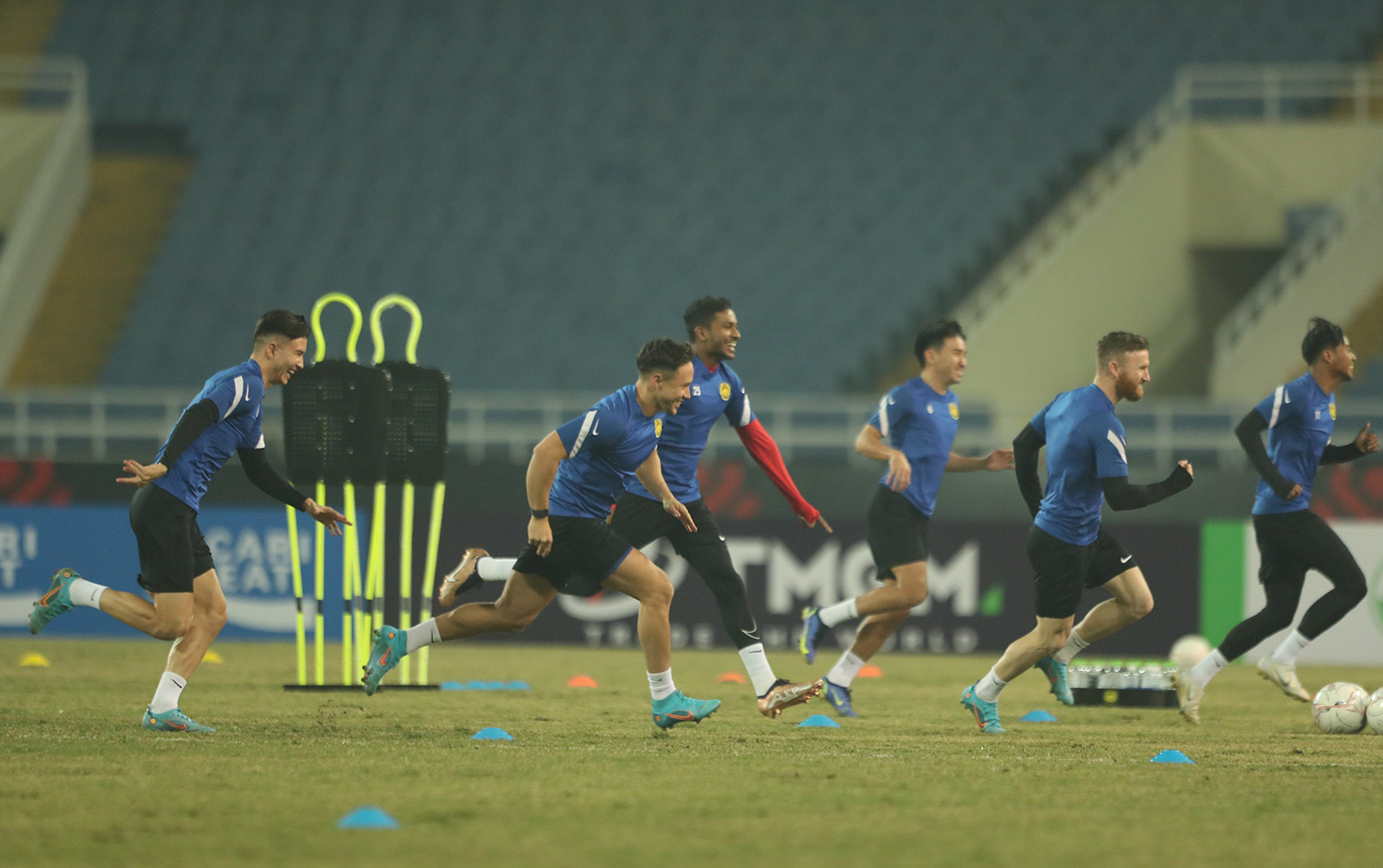Vào lúc 19h30 tối 26/12, tuyển Malaysia có buổi tập làm quen sân Mỹ Đình trước trận gặp tuyển Việt NamCác cầu thủ Malaysia khởi động khá kỹ để làm nóng cơ thểCái tên đáng chú ý nhất của Malaysia là tiền đạo gốc Argentina, Sergio Aguero. Chân sút sinh năm 1994 này vừa ghi 1 bàn vào lưới Lào, có tên giống với tay săn bàn mọi thời đại của Man City, nhưng đã phải giải nghệ sớm vào năm ngoái khi gia nhập Barca chưa lâu do gặp vấn đề về timTuyển Malaysia có sự khởi đầu thuận lợi với 2 trận thắng trước Myanmar (1-0) và Lào (5-0)Lực lượng tuyển Malaysia tới Hà Nội là đội hình rất mạnh với một vài cầu thủ nhập tịchHLV Kim Pan Gon sau khi nhậm chức từ đầu năm 2022 đã tiến hành cải tổ lực lượng và trẻ hoá đội hìnhChiến lược gia người Hàn Quốc đặc biệt khen ngợi người đồng nghiệp Park Hang Seo trước trận đấuThuyền trưởng tuyển Malaysia khẳng định biết điểm yếu của Việt Nam và tự tin vào một chiến thắng trước đồng hương Park Hang SeoTrận đấu giữa tuyển Việt Nam vs Malaysia diễn ra vào lúc 19h30 ngày 27/12 trên SVĐ Mỹ Đình