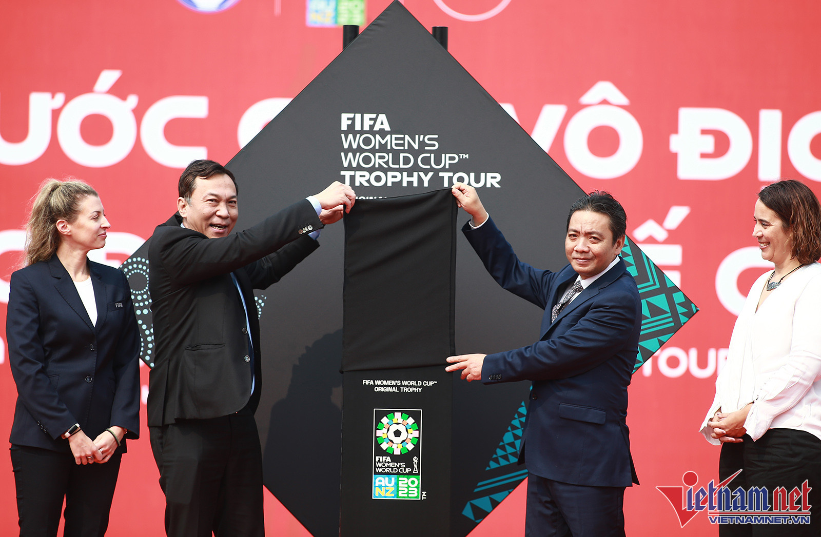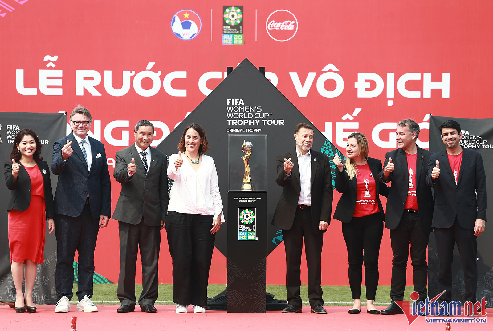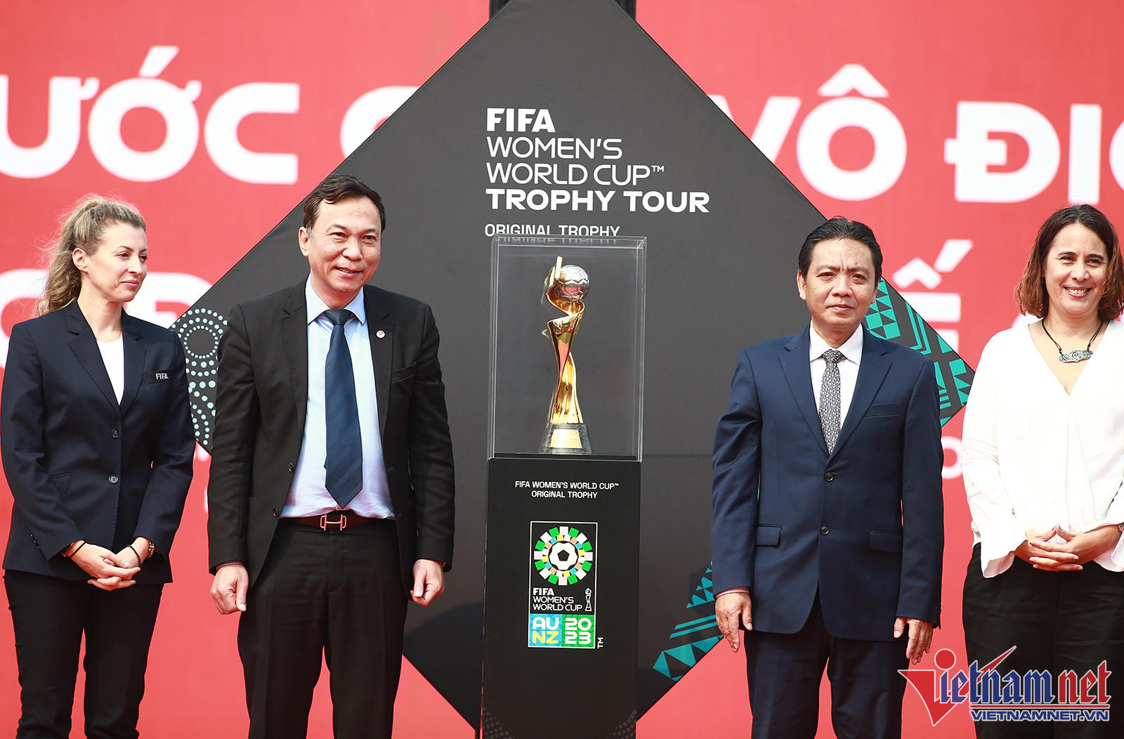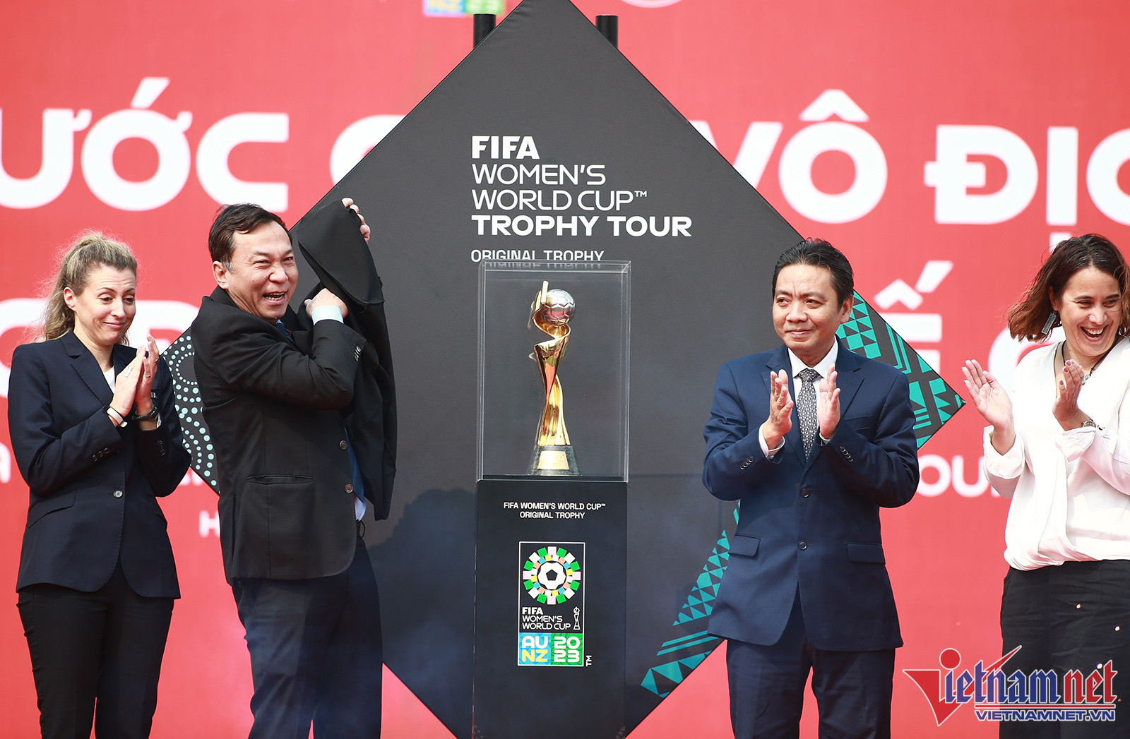 Lễ rước Cúp vàng giải vô địch bóng đá nữ thế giới - World Cup 2023 diễn ra tại Hà Nội sáng 4/3 Nhiều quan chức FIFA, Đại sứ quán New Zealand và Australia, lãnh đạo VFF, HLV Philippe Trussier, HLV Mai Đức Chung cùng tuyển nữ Việt Nam tham dựTuyển nữ Việt Nam tạo nên dấu mốc lịch sử khi lần đầu tiên giành quyền vào thi đấu VCK World Cup 2023, trở thành 1 trong 6 đại diện của bóng đá châu Á góp mặt tại sân chơi danh giá này.Thứ trưởng Bộ VH, TT&DL cùng Chủ tịch VFF Trần Quốc Tuấn gỡ bỏ tấm màn che Cúp vàng World Cup 2023"Đội tuyển bóng đá nữ Việt Nam đã tạo nên dấu ấn lịch sự khi giành quyền tham dự VCK FIFA World Cup nữ 2023. Để giành được thành tích này, đội tuyển phải vượt qua nhiều khó khăn, thậm chí có những lúc tưởng chừng như đã phải dừng bước vì ảnh hưởng của Covid-19. Nhưng với tinh thần quật cường, ý chí của người phụ nữ Việt Nam, toàn đội giành quyền tham dự vào vòng cuối cùng. Đây là lý do để Việt Nam đã trở thành 1 trong 2 điểm đến tại Đông Nam Á của chiếc Cúp vàng World Cup. Con đường phía trước còn nhiều thách thức, xin chúc tuyển nữ Việt Nam thi đấu hết mình vì màu cờ sắc áo, góp phần đưa hình ảnh Việt Nam ra thế giới", ông Trần Quốc Tuấn phát biểu.Lễ rước Cúp vàng giải World Cup 2023 tại Việt Nam nằm trong chuỗi hoạt động quảng bá cho FIFA World Cup nữ 2023. Chương trình FIFA Women's World Cup Trophy Tour - Hành trình của Cúp vàng World Cup nữ 2023 chính thức được khởi động từ ngày 25/2 với điểm đến đầu tiên là Nhật Bản, và sau đó lần lượt ghé thăm 31 quốc gia còn lại, có đại diện giành quyền tham dự World Cup 2023.Cận cảnh Cúp vàng World Cup nữ 2023.Thế hệ vàng của bóng đá Việt Nam được chứng kiến các đàn em, đàn cháu giành vé dự World Cup.HLV Mai Đức Chung cho biết cách đây mấy năm ông được trực tiếp chạm vào chiếc cúp danh giá trong một sự kiện của FIFA. Điều này mang tới may mắn cho tuyển nữ Việt Nam."Tôi rất hạnh phúc và tự hào khi được chứng kiến Cúp vàng World Cup 2023 ngay tại đây. Tuyển nữ cố gắng hết sức giành thành tích tốt nhất tại World Cup sắp tới", HLV Mai Đức Chung nhấn mạnh.Tuyết Dung cùng các đồng đội bên Cúp vàng.Tuyển nữ Việt Nam thực hiện được giấc mơ tham dự World Cup.Tại World Cup 2023, tuyển nữ Việt Nam nằm chung bảng với ĐKVĐ Mỹ, Á quân Hà Lan và Bồ Đào Nha.Kết thúc hành trình vòng quanh thế giới, Cúp vàng sẽ dừng chân lần lượt tại 9 thành phố đăng cai World Cup 2023 tại New Zealand và Australia từ ngày 2/6 đến 14/7, trước khi giải đấu chính thức khởi tranh vào ngày 20/7/2023.