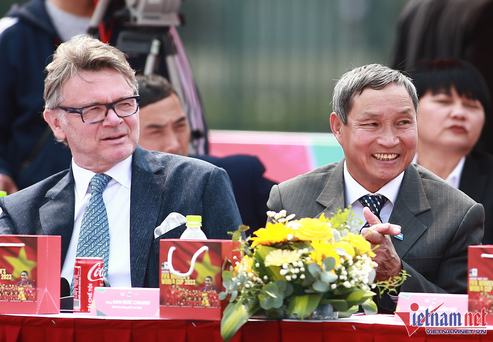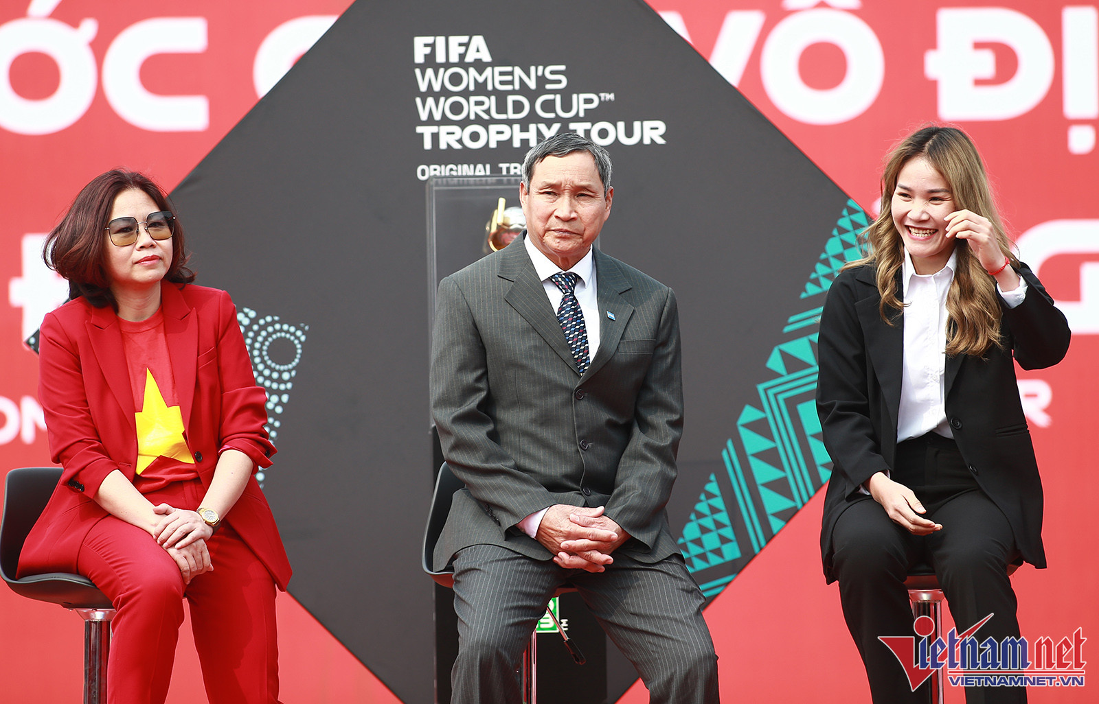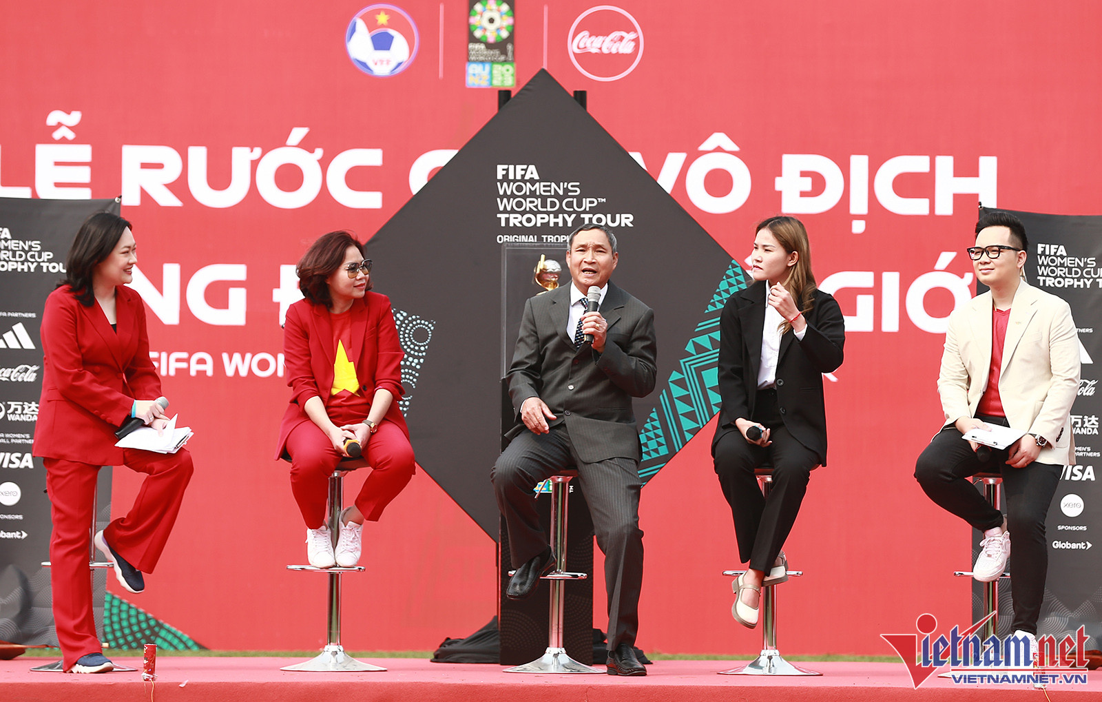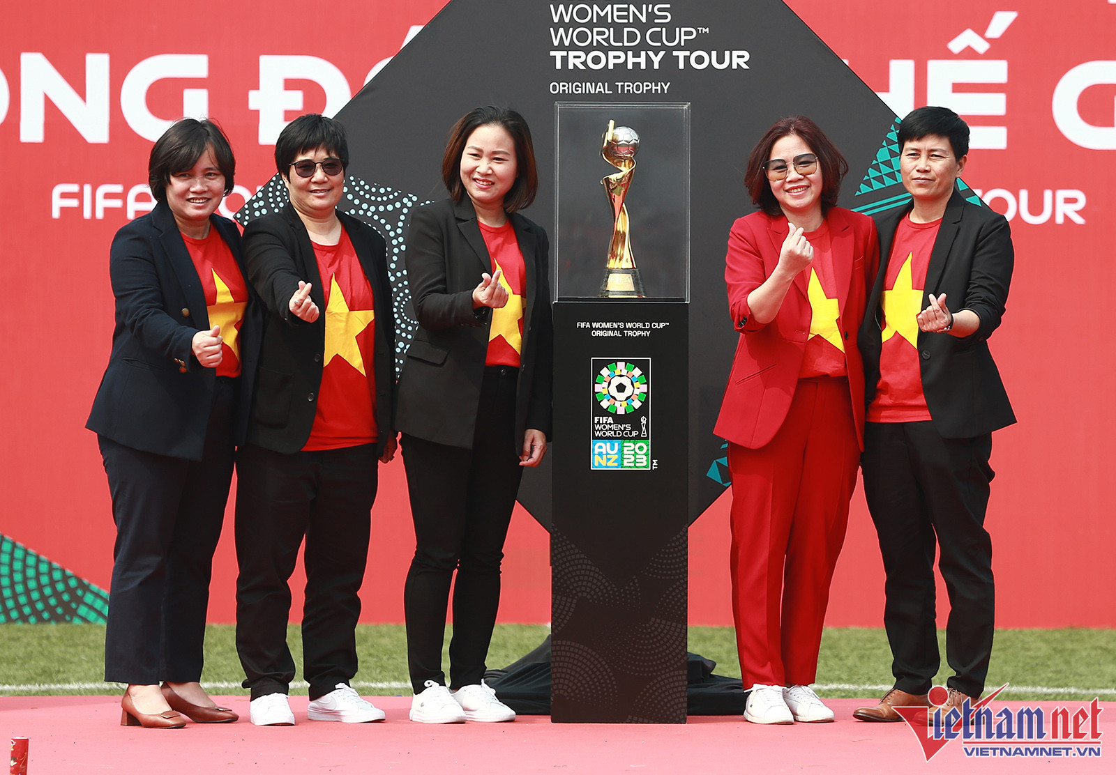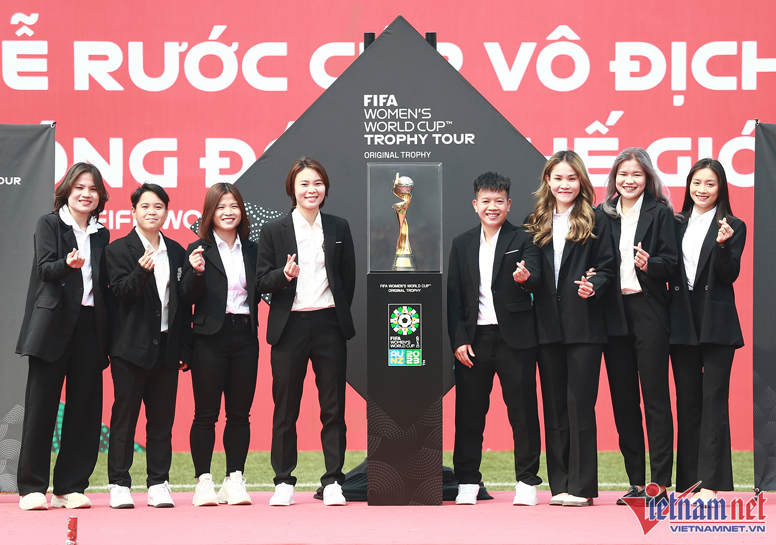 Lễ rước Cúp vàng giải vô địch bóng đá nữ thế giới - World Cup 2023 diễn ra tại Hà Nội sáng 4/3 Nhiều quan chức FIFA, Đại sứ quán New Zealand và Australia, lãnh đạo VFF, HLV Philippe Trussier, HLV Mai Đức Chung cùng tuyển nữ Việt Nam tham dựTuyển nữ Việt Nam tạo nên dấu mốc lịch sử khi lần đầu tiên giành quyền vào thi đấu VCK World Cup 2023, trở thành 1 trong 6 đại diện của bóng đá châu Á góp mặt tại sân chơi danh giá này.Thứ trưởng Bộ VH, TT&DL cùng Chủ tịch VFF Trần Quốc Tuấn gỡ bỏ tấm màn che Cúp vàng World Cup 2023"Đội tuyển bóng đá nữ Việt Nam đã tạo nên dấu ấn lịch sự khi giành quyền tham dự VCK FIFA World Cup nữ 2023. Để giành được thành tích này, đội tuyển phải vượt qua nhiều khó khăn, thậm chí có những lúc tưởng chừng như đã phải dừng bước vì ảnh hưởng của Covid-19. Nhưng với tinh thần quật cường, ý chí của người phụ nữ Việt Nam, toàn đội giành quyền tham dự vào vòng cuối cùng. Đây là lý do để Việt Nam đã trở thành 1 trong 2 điểm đến tại Đông Nam Á của chiếc Cúp vàng World Cup. Con đường phía trước còn nhiều thách thức, xin chúc tuyển nữ Việt Nam thi đấu hết mình vì màu cờ sắc áo, góp phần đưa hình ảnh Việt Nam ra thế giới", ông Trần Quốc Tuấn phát biểu.Lễ rước Cúp vàng giải World Cup 2023 tại Việt Nam nằm trong chuỗi hoạt động quảng bá cho FIFA World Cup nữ 2023. Chương trình FIFA Women's World Cup Trophy Tour - Hành trình của Cúp vàng World Cup nữ 2023 chính thức được khởi động từ ngày 25/2 với điểm đến đầu tiên là Nhật Bản, và sau đó lần lượt ghé thăm 31 quốc gia còn lại, có đại diện giành quyền tham dự World Cup 2023.Cận cảnh Cúp vàng World Cup nữ 2023.Thế hệ vàng của bóng đá Việt Nam được chứng kiến các đàn em, đàn cháu giành vé dự World Cup.HLV Mai Đức Chung cho biết cách đây mấy năm ông được trực tiếp chạm vào chiếc cúp danh giá trong một sự kiện của FIFA. Điều này mang tới may mắn cho tuyển nữ Việt Nam."Tôi rất hạnh phúc và tự hào khi được chứng kiến Cúp vàng World Cup 2023 ngay tại đây. Tuyển nữ cố gắng hết sức giành thành tích tốt nhất tại World Cup sắp tới", HLV Mai Đức Chung nhấn mạnh.Tuyết Dung cùng các đồng đội bên Cúp vàng.Tuyển nữ Việt Nam thực hiện được giấc mơ tham dự World Cup.Tại World Cup 2023, tuyển nữ Việt Nam nằm chung bảng với ĐKVĐ Mỹ, Á quân Hà Lan và Bồ Đào Nha.Kết thúc hành trình vòng quanh thế giới, Cúp vàng sẽ dừng chân lần lượt tại 9 thành phố đăng cai World Cup 2023 tại New Zealand và Australia từ ngày 2/6 đến 14/7, trước khi giải đấu chính thức khởi tranh vào ngày 20/7/2023.