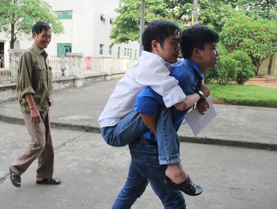 Cũng giống như Mai Phương, Lê Xuân Bách không thể tự đi trên đôi chân của mình. Bị teo cơ bẩm sinh, suốt quãng thời gian cắp sách đến trường, bố luôn là người đồng hành cùng em.