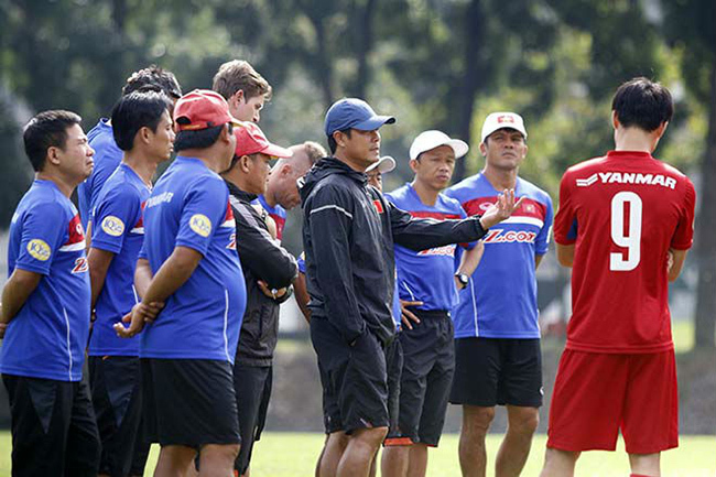 | Dưới thời HLV Hữu Thắng, các trợ lý rất đông đảo nhưng chiến lược gia người xứ Nghệ vẫn khá cô đơn trong câu chuyện chuyên môn |