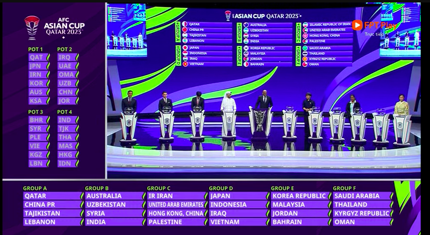 Kết quả bốc thăm đưa tuyển Việt Nam vào nằm chung bảng D với Nhật Bản, Iraq và đội bóng cùng khu vực Indonesia.