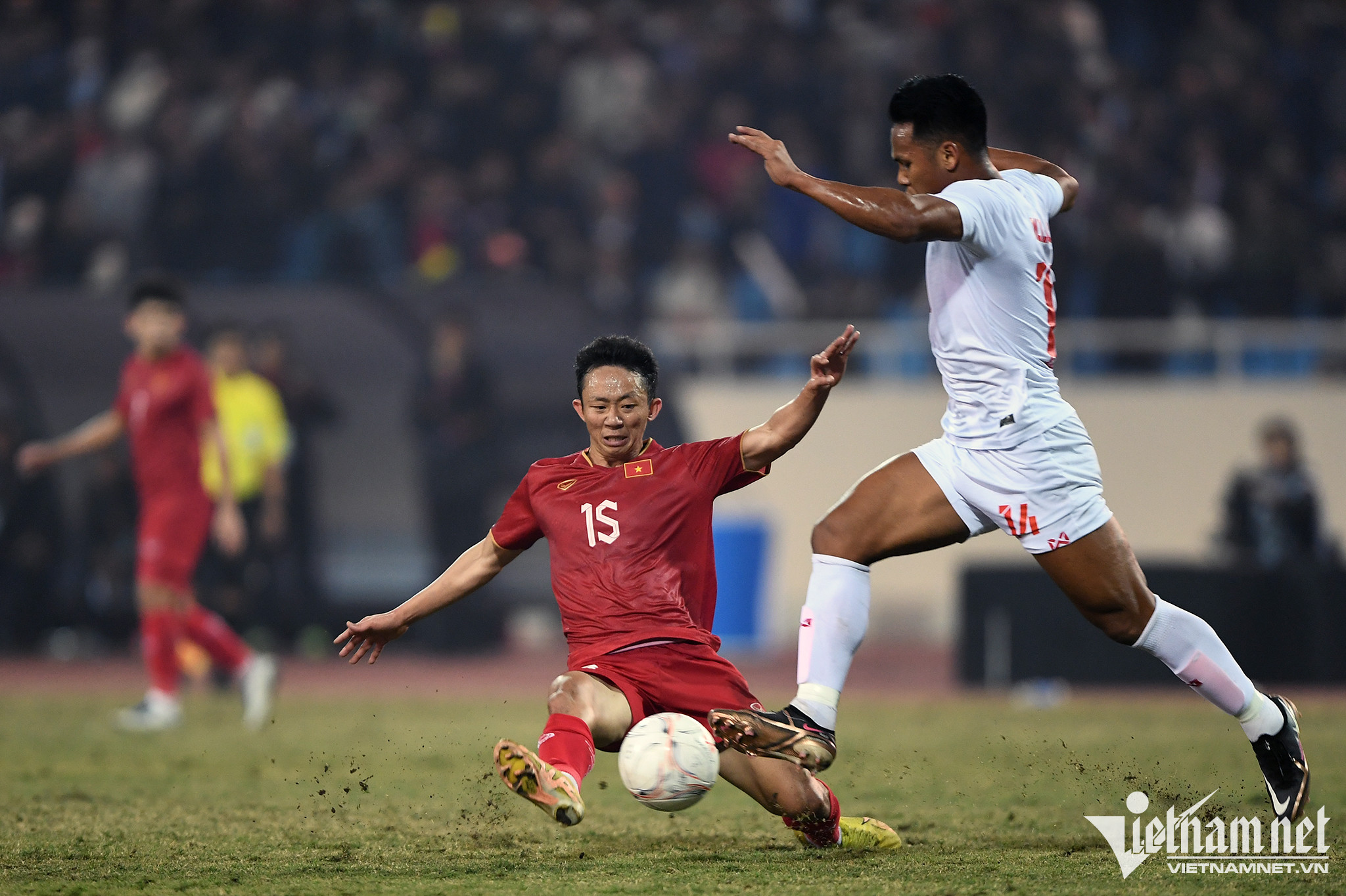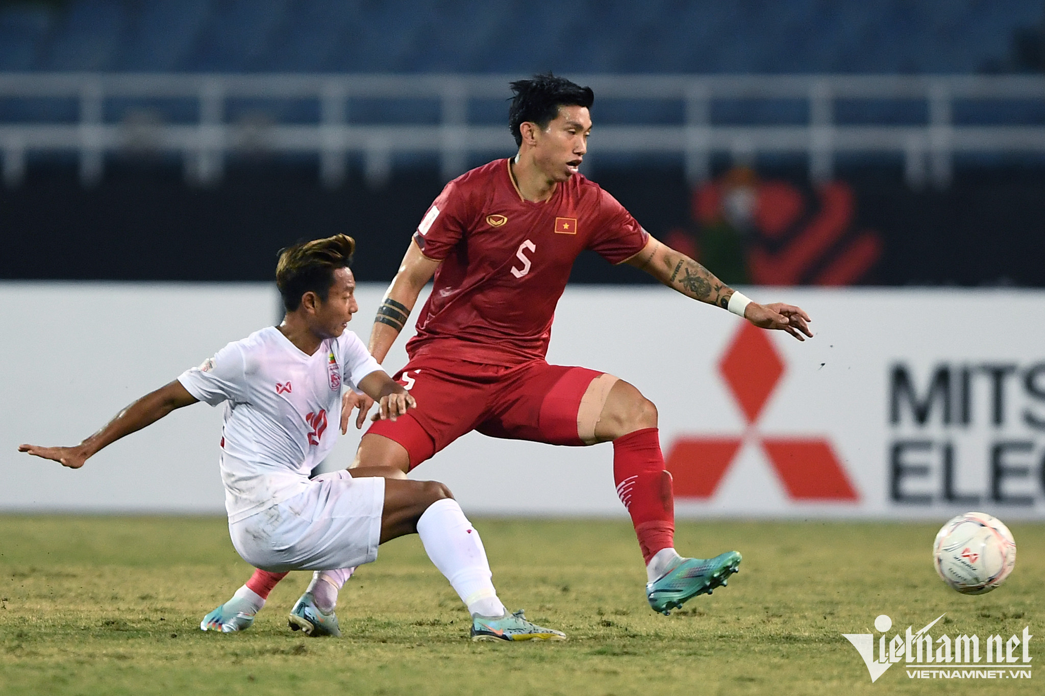 Chỉ chơi 1 hiệp, nhưng Hùng Dũng vẫn để lại dấu ấn với những pha đánh chặn chất lượng bên cạnh vai trò là người khởi đầu cho các đợt tấn công bên phía tuyển Việt Nam.