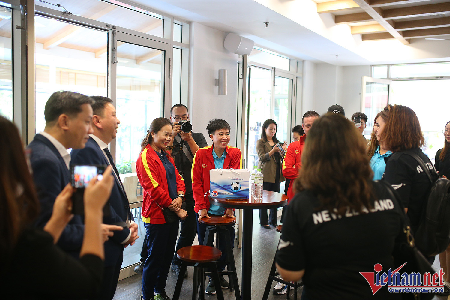 Chiều 22/10, Tuyết Dung, Chương Thị Kiều, Tổng thư ký VFF Lê Hoài Anh cùng đại diện các phòng chức năng VFF có mặt tại Đại sứ quán Australia để theo dõi trực tiếp lễ bốc thăm World Cup nữ 2023Bà Tredene Dobdon - Đại sứ New Zealand chúc mừng tuyển nữ Việt Nam lần đầu tham dự World Cup. Bà Tredene Dobdon khẳng định nước chủ nhà New Zealand có sự chuẩn bị tốt nhất để cùng Australia tổ chức thành công World Cup. Đại sứ New Zealand rất mong đội bóng quê hương của mình sẽ vượt qua vòng bảngĐại sứ Australia tại Việt Nam, ông Andrew Goledzinowski chúc mừng tuyển nữ Việt Nam, đồng thời thể hiện sự vinh dự, tự hào khi lần đầu tiên World Cup được tổ chức ở phía Nam bán cầuĐại sứ Andrew Goledzinowski khẳng định World Cup 2023 sẽ là một ngày hội không quên với các đội tuyển và người hâm mộ trên khắp thế giớiTuyển thủ Tuyết Dung đá trái bóng khai màn trước lễ bốc thăm World CupCác tuyển thủ nữ Việt Nam rất hào hứng, sẵn sàng đón nhận kết quả bốc thăm tại World Cup 2023. Tuyển thủ Tuyết Dung thậm chí còn cho biết mình và các đồng đội gặp các đội càng mạnh càng thíchTất cả hồi hộp chờ đợi kết bốc thămTuyển Việt Nam nằm ở bảng E cùng đội đương kim vô địch Mỹ và đương kim Á quân Hà Lan. Đây là bảng đấu mang lại thử thách cực lớn với thầy trò HLV Mai Đức ChungTuyển nữ Việt Nam sẽ có sự chuẩn bị tốt nhất. Chia sẻ về kết quả bốc thăm, Tuyết Dung cho biết: "Chúng tôi nghĩ rằng nếu gặp ĐKVĐ Mỹ sẽ rất thú vị, cuối cùng thì gặp thật. Ngoài ra, tuyển nữ Việt Nam còn gặp đương kim Á quân Hà Lan. Toàn đội cố gắng hết sức trong lần đầu tham dự World Cup"Bà Lê Thị Hoàng Yến - Phó Tổng cục trưởng Tổng cục TDTT chúc mừng hai nước đăng cai Australia và New Zealand. Bà Tredene Dobdon - Đại sứ New Zealand khẳng định: "Chúng tôi sẽ giúp tuyển nữ Việt Nam có sự chuẩn bị tốt nhất về mọi mặt, giúp các bạn có cảm giác như ở nhà khi thi đấu ở New Zealand"World Cup 2023 hứa hẹn hấp dẫn, thành công.