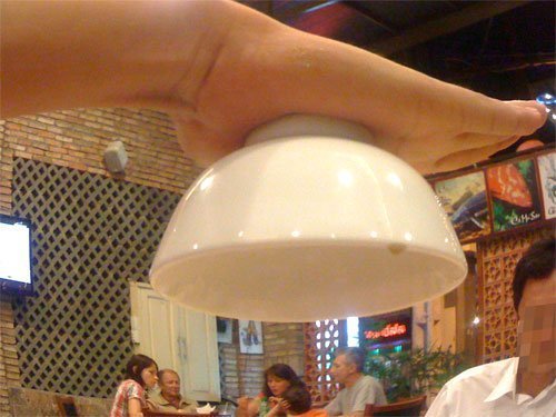 Bạn sẽ thấy thế nào khi một chiến hữu trong bàn nhậu bất ngờ rót bia vào ly của mình theo kiểu có một không hai như trong ảnh dưới đây?. Lon bia bất ngờ dính chặt trong lòng bàn tay trong khi cả năm ngón đều duỗi thẳng ra, dù trút ngược xuống cũng không rớt.