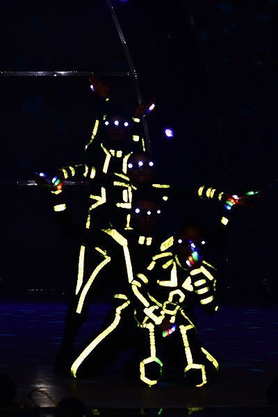 Ngay từ bài diễn mở màn, tất cả đã khiến cho khán giả cảm thấy vô cùng phấn khích với bài nhảy nhóm theo thể loại hiphop house trên nền nhạc của ca khúc Tao of the machine. Lấy ý tưởng từ bộ phim hành động giả tưởng Tron, cả bốn đã xuất hiện trên một sân khấu không đèn cùng với những bộ trang phục phản quang và tạo nên một bữa tiệc ánh sáng thực sự bằng những động tác vũ đạo mạnh mẽ, dứt khoát cùng một đội hình di chuyển đều và linh hoạt