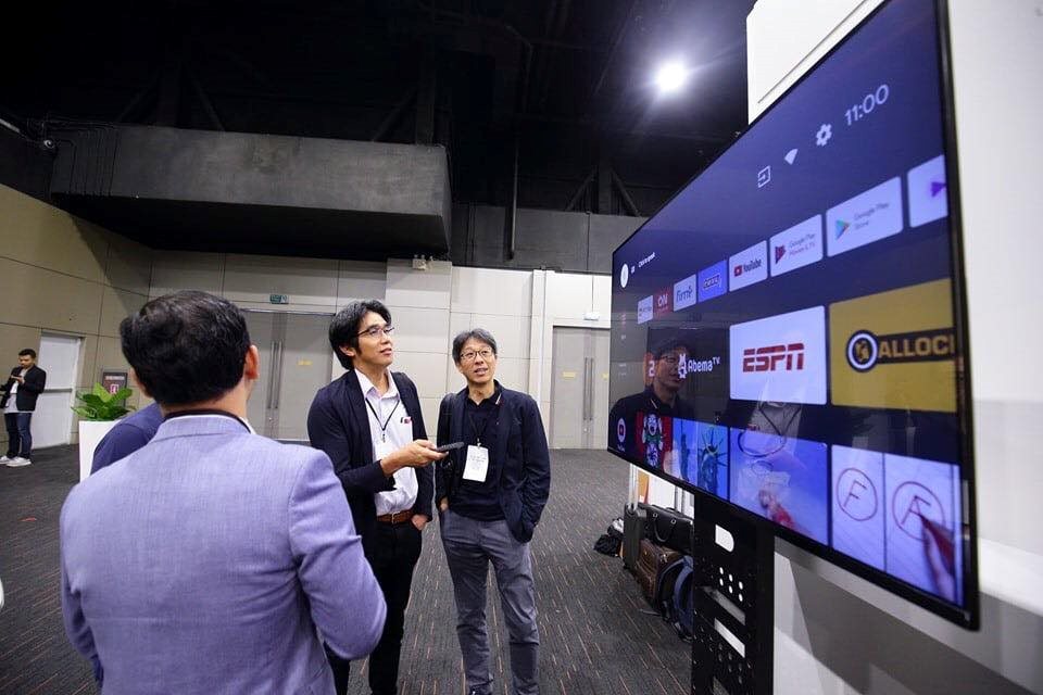 Mẫu TV được trưng bày có mã hiệu 55KE8500 giống như hình ảnh mẫu hộp đã rò rỉ trước đó. Kiểu dáng của chiếc TV khá mỏng, không cạnh viền và thiết kế hiện đại. Đúng như dự đoán, mẫu TV Vsmart 55KE8500 có kích thước 55inch với độ phân giải 4K và sử dụng hệ điều hành AndroidTV.