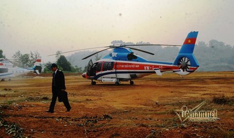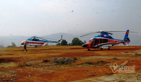 Tại bãi đỗ này, hai chiếc trực thăng đã bay từ Gia Lâm đến, hạ cánh đợi sẵn trước khoảng hơn 1 tiếng đồng hồ, chờ đoàn của Mark.