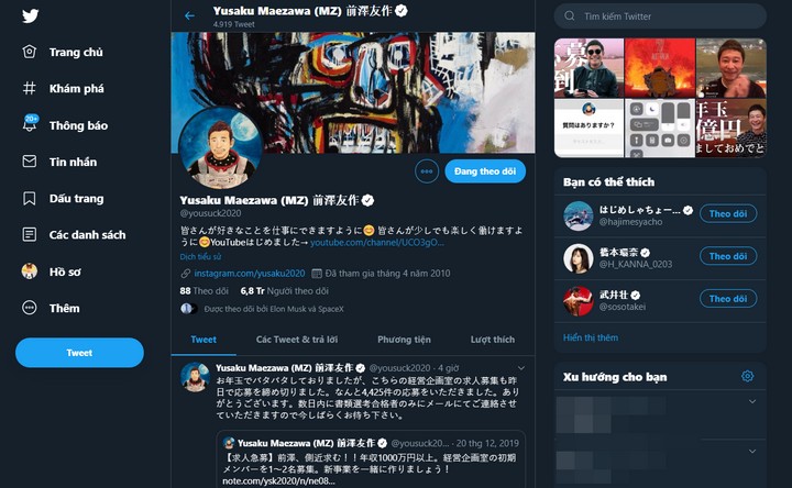 Hồi tháng 11/2019, Maezawa đã thu về hơn 900 triệu USD sau khi bán doanh nghiệp thời trang trực tuyến Zozotown cho SoftBank.
