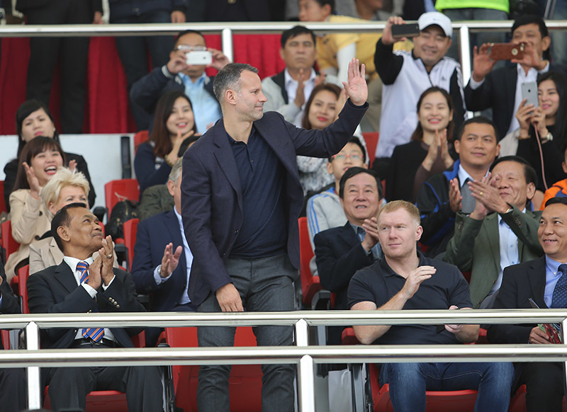 Giggs chào người hâm mộ Việt Nam Sau đó anh cùng người đồng đội ở CLB MU Paul Scholes đã tham dự lễ cắt băng khánh thành trung tâm PVF Giggs sẽ có 2 năm làm giám đốc PVF Trên khán đài, HLV Lê Huỳnh Đức và Nguyễn Văn Sỹ cũng xuất hiện, bên cạnh nhiều lãnh đạo Tổng cục TDTT, quan chức VFF, VPF Lứa cầu thủ U20 tài năng như Văn Hậu, Tiến Dũng, Tiến Dụng, Đức Chinh... cũng có mặt trên khán đài Rất đông CĐV đã ngồi kín chỗ Lần đầu tiên các CĐV được gần thần tượng của mình như vậy Trận giao hữu giữa U15 PVF và U15 Stoke City đã diễn ra rất hấp dẫn U15 PVF là đội mở tỷ số Đội khách gặp nhiều khó khăn trong hiệp 1 U15 PVF hai lần vươn lên dẫn trước nhưng đều bị gỡ hoà Trận đấu kết thúc với tỷ số 2-2. Trong loạt penalty may rủi, U15 PVF đã giành chiến thắng với tỷ số 4-2. |