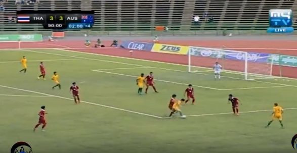 Phung phí nhiều cơ hội, U16 Australia đã phải trả giá đắt trước khi hiệp một trận bán kết khép lại. Đón đường chuyền thuận lợi của đồng đội, Kaminthong thoát xuống rồi tung cú sút chéo góc chính xác, gỡ hòa 1-1 cho U16 Thái Lan.