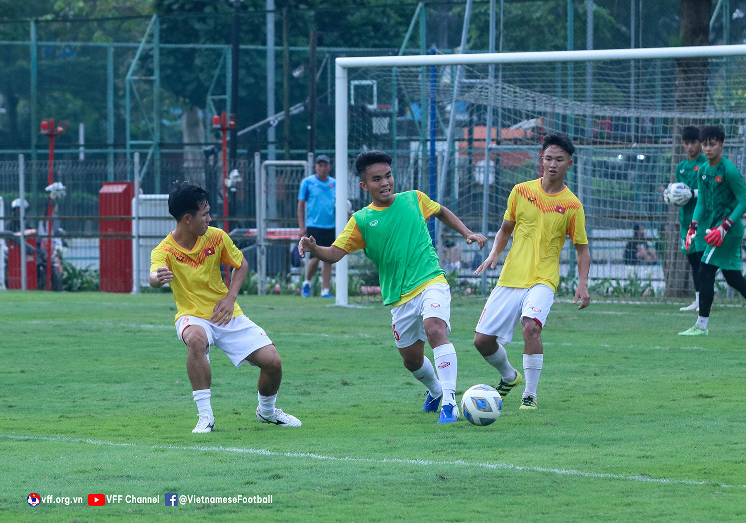 Thầy trò HLV Đinh Thế Nam tích cực tập luyện, hoàn thiện kỹ-chiến thuật, chuẩn bị đấu pháp trước trận ra quân gặp Indonesia tại giải U19 Đông Nam Á 2022.
