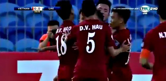 ![]() Video bàn thắng U19 Việt Nam 1-1 U19 UAE Dù vươn lên dẫn trước từ rất sớm với pha ghi bàn tuyệt đẹp của Minh Dĩ nhưng các cầu thủ U19 Việt Nam đã không thể bảo toàn được tỷ số, để UAE gỡ hòa, kết thúc trận đấu với tỷ số hòa tối thiểu. Hòa U19 UAE, U19 Việt Nam rộng cửa vào tứ kết Dù phải chơi thiếu người trong hơn 30 phút nhưng U19 Việt Nam đã thi đấu kiên cường để cầm hòa U19 UAE với tỷ số 1-1.