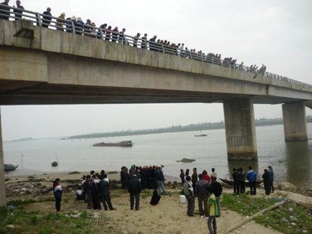 Sáng 6/3, tại cầu Cửa Sót, nối xã Thạch Đỉnh (huyện Thạch Hà) với xã Hộ Độ (huyện Lộc Hà) có rất đông người dân hiếu kì đứng vây kín xem thi thể một nữ sinh vừa được vớt lên.