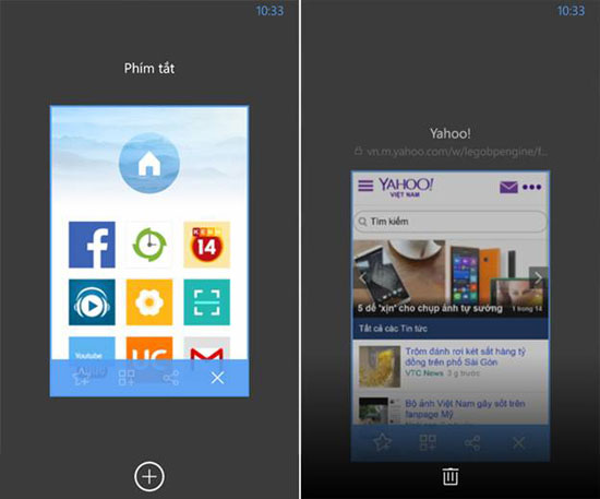 Quản lý tab thông minh hơn (dành riêng cho thiết bị Windows Phone với RAM tối thiểu 1GB)