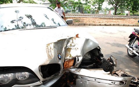 Vụ tai nạn xảy ra vào sáng nay (ngày 28/3). Vào thời điểm trên, chiếc BMW 318i do tài xế Vũ Minh Hoàng (35 tuổi, quê Hà Nội) đang chạy trên đường Nguyễn Văn Linh, khi tới dốc cầu Bà Lớn (huyện Bình Chánh, TP HCM) thì bất ngờ loạng choạng lao đi ngoài tầm kiếm soát của người điều khiển. Xe ủi bật gốc 1 cây xanh, lao vào làn đường dành cho xe máy và tông thẳng vào rào sắt chắn bên đường.