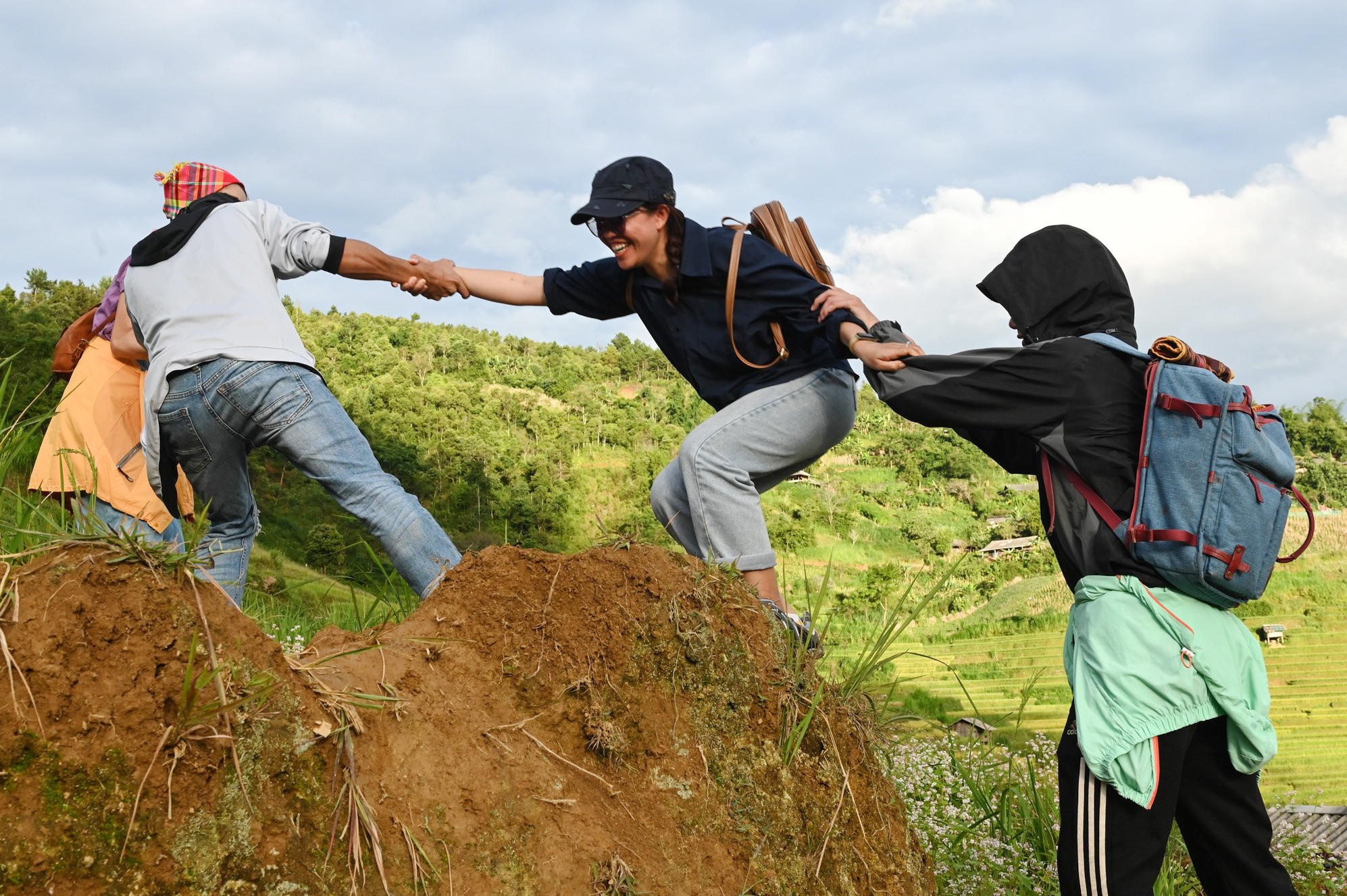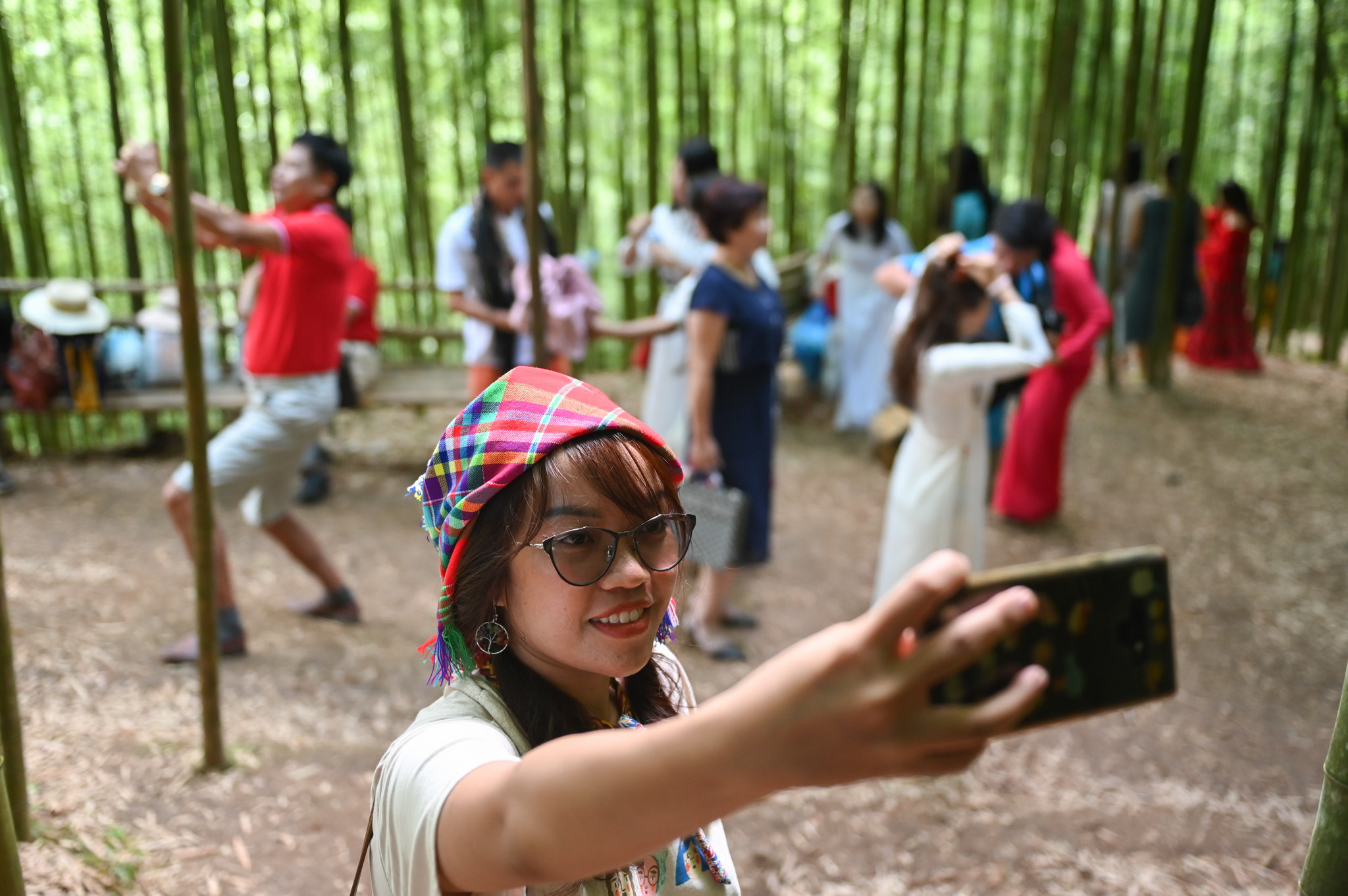 Váy áo xúng xính, nhiều màu sắc, chụp xong các chị em nhanh chóng kiểm tra lại những bức hình sống ảo của mình. Giữa năm 2020, với mong muốn giới thiệu vẻ đẹp địa phương và tạo việc làm, tăng thu nhập cho người dân bản địa, nơi đây đã trở thành điểm tham quan.Hương Phạm (trái) bay từ TP.HCM ra Hà Nội rồi di chuyển gần 300km lên Mù Cang Chải du lịch, cô mua thêm khăn đội đầu của dân tộc Mông để chụp hình trong rừng trúc để được nổi bật. "Tới cánh đồng lúa chín vàng, tôi thấy cảnh sắc rất độc đáo, bạn bè mách đi rừng trúc nên mới vào được nhưng mất tới 30 phút dù chỉ qua quãng đường 250m", Hương nói.Cung đường lên rừng trúc được nhận xét khó đi nhưng là trải nghiệm lý thú đối với những người yêu thích chinh phục núi đèo.