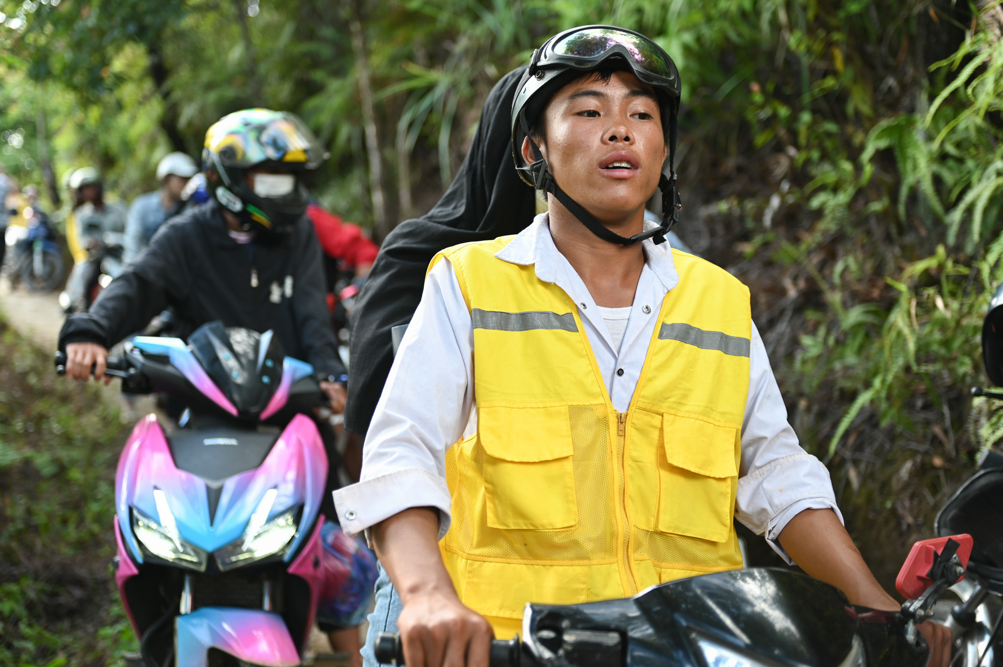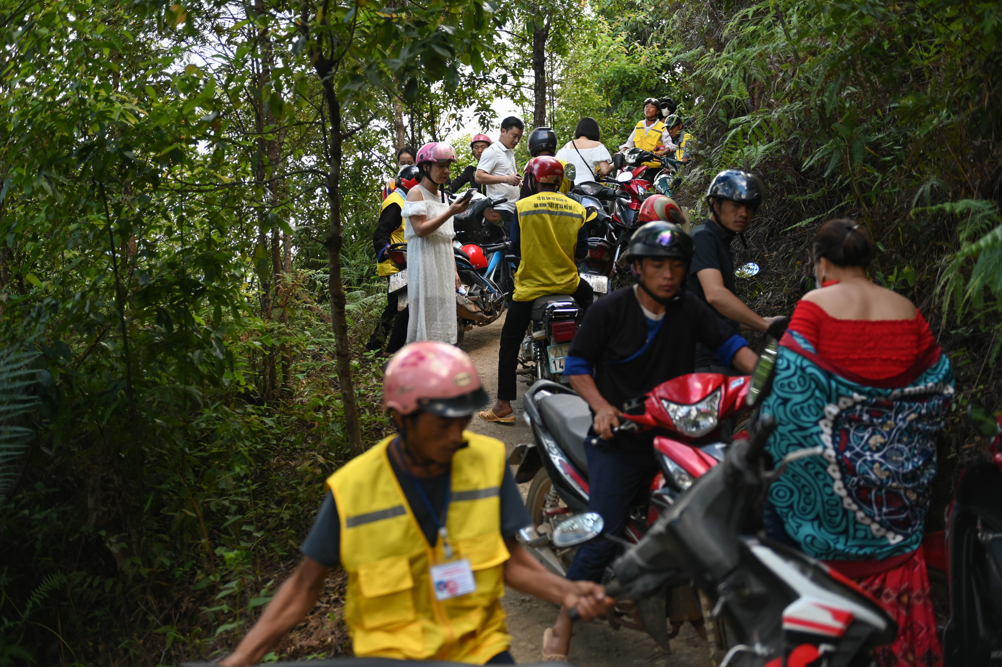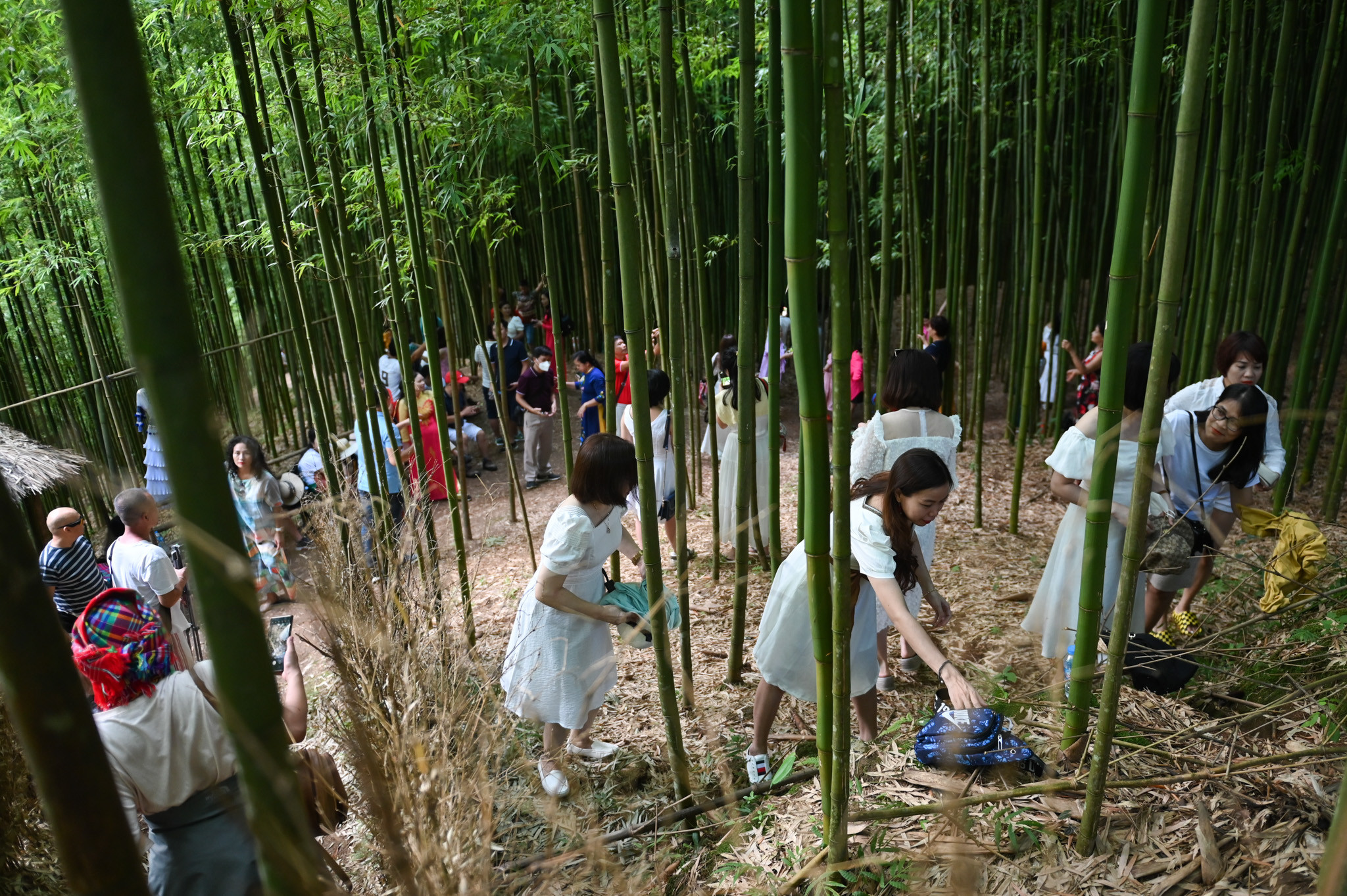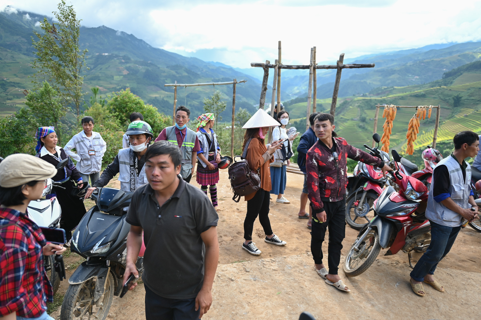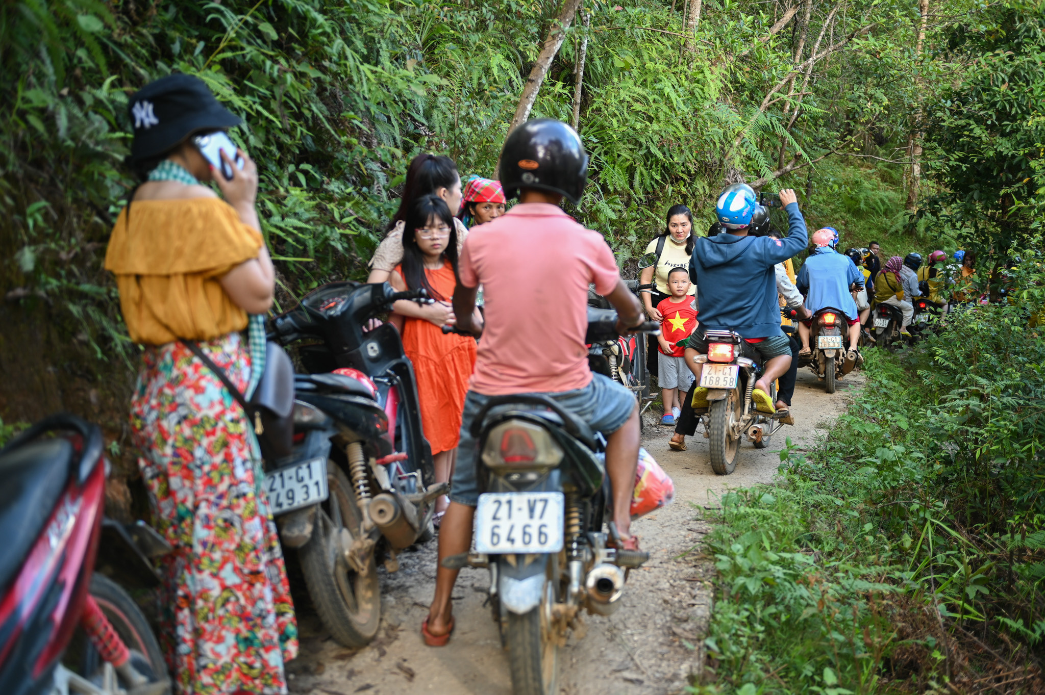 Trong hai ngày 17 và 18/9, tuần đầu các đồng lúa chín ở Mù Cang Chải (Yên Bái) chuyển màu vàng rực, du khách từ các tỉnh, thành đang kéo nhau về tham quan. Từ năm 2020, ở xã Púng Luông, cách thị trấn Mù Cang Chải khoảng 20 km có thêm những cánh đồng trúc thẳng tắp, được nhiều du khách ví như bối cảnh phim kiếm hiệp ngoài đời thực.Đường vào khu tham quan rừng trúc lắt léo, dốc cao, lối đi nhỏ hẹp, người đi xe máy phải dừng lại để tránh nhau. Để có được trải nghiệm này, nhiều du khách phải sử dụng dịch vụ xe ôm bản địa để di chuyển từ trung tâm huyện.Từ chiều 17/9, phía đường lên rừng trúc xã Mồ Dề khá đông đúc.Nhiều đoạn bị ùn tắc khá dài, một phần vì lý do lối đi quá nhỏ hẹp.A Sớ (xe ôm bản địa) cho biết vào dịp du lịch, anh chạy được khoảng 15 cuốc xe. "Tôi chở khách lên rồi cho họ số điện thoại, lúc về tôi sẽ quay lại đón. Trong lúc chờ, tôi chạy xuống dưới để đón chuyến khác, gối nhau", A Sớ nói.Con đường chỉ rộng khoảng 1m với 2 hướng xe lên xuống. Nhiều du khách vứt xe bên dưới dốc rồi đi bộ lên chơi để tránh tắc.Bên trong khu vực vui chơi chụp ảnh tại rừng trúc, hàng trăm du khách chật vật tìm chỗ chụp ảnh.Khu rừng trúc nằm ở bản Háng Sung đã có cách đây hơn 60 năm, diện tích khoảng 2ha, hoang sơ, xanh mướt nhờ hàng trăm nghìn cây trúc thẳng tắp.