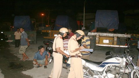 | Đến 21g CSGT vẫn chưa lập xong biên bản (Ảnh: Trần Chánh Nghĩa) |