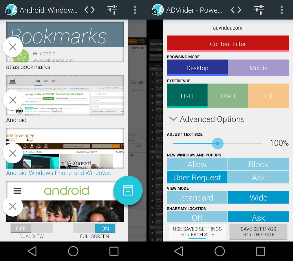 Atlas là trình duyệt web cho phép bạn quản lý hoàn toàn trải nghiệm duyệt web bằng AdBlock (lọc quảng cáo, theo dõi), giảm lượng sử dụng dữ liệu, tăng hiệu suất, cải thiện thời gian sử dụng pin. Tính năng Control Panel giúp người dùng chuyển qua lại giữa chế độ xem máy tính và di động. Chế độ dual-view hiển thị hai trang web cùng một lúc. Ngoài ra, Atlas còn có các tính năng như duyệt riêng tư, tự động tìm kiếm và gợi ý từ thanh địa chỉ.