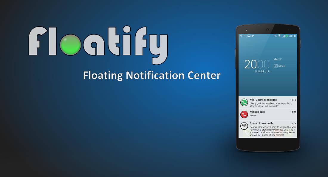 Khi có thông báo mới, Floatify sẽ hiển thị chúng dưới dạng cửa sổ popup trên màn hình. Bạn có thể tương tác với cửa sổ này bằng cách mở ở kích thước đầy đủ, mở hoặc tắt thông báo, đặt lịch nhắc nhở. Ngay cả khi điện thoại đã khóa, bạn vẫn mở để xem trực tiếp thông báo. Floatify có tính năng sổ đen để chặn thông báo khi đang chơi game hay duyệt web.