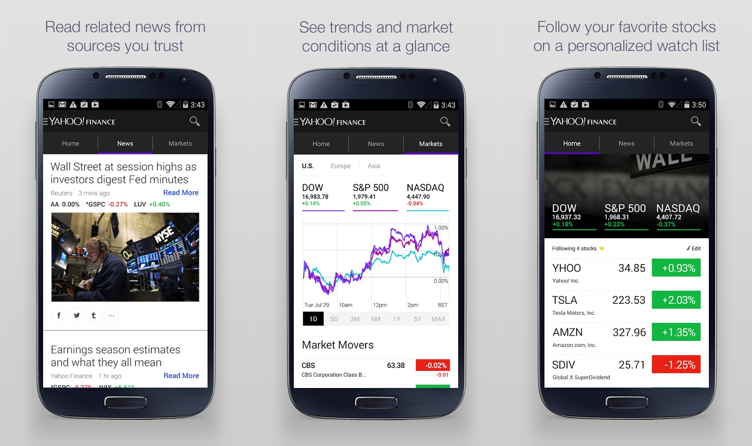 Bạn có thể theo dõi thị trường chứng khoán, tin tức và thông báo liên quan qua ứng dụng Yahoo Finance. Bạn được thêm vào mã cổ phiếu để biết biến động tăng, giảm ra sao cũng như các phân tích từ chuyên gia, biểu đồ sống động.