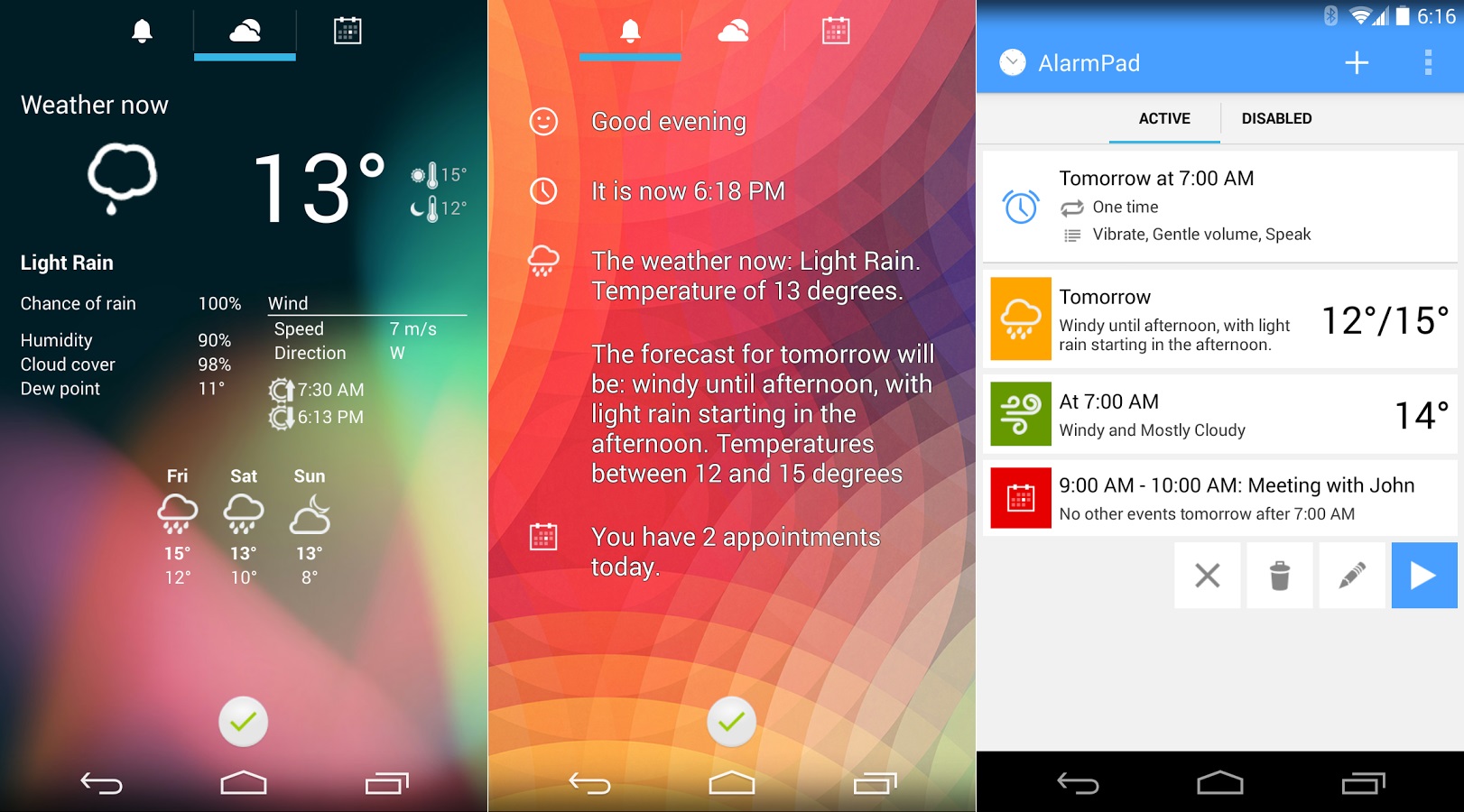 AlarmPad là ứng dụng báo thức với một số thông tin dựa theo bối cảnh. Không chỉ cho phép hẹn giờ báo thức, nó còn hiển thị dự báo thời tiết, thông báo về lịch trình trong ngày xoay quanh thời điểm báo thức. Nó cũng cung cấp nhiều thanh tiện ích khá rực rỡ.